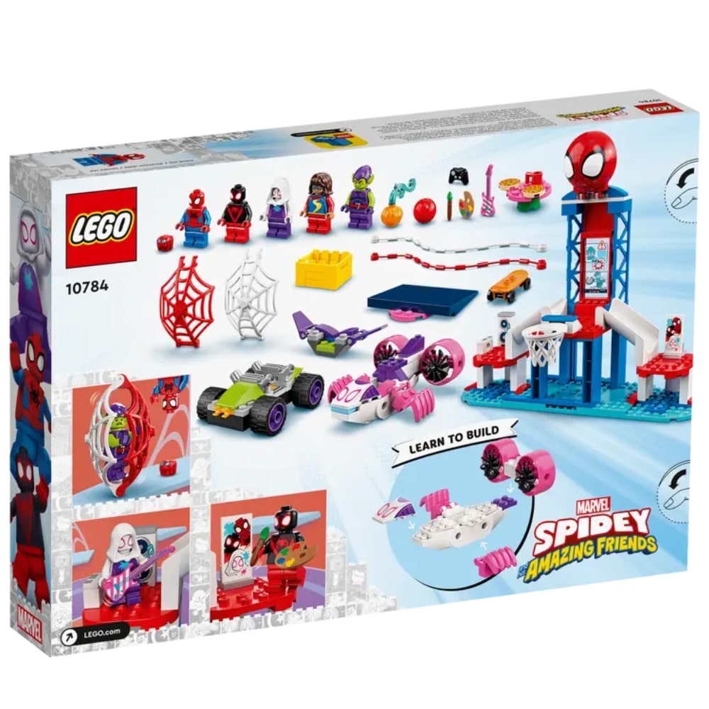 Jopa verkonpunojien täytyy joskus levätä! Auta yli 4-vuotiaita pikkurakentelijoita rakentamaan upea rentoutumispaikka: LEGO® Marvel Spidey And His Amazing Friends Spider-Manin seittipäämaja (10784). Lapset voivat lennättää paikalle kummituskopterin ja liittyä porukkaan heittelemään koreja, skeittaamaan, pelaamaan, tanssimaan ja taiteilemaan. Kun Vihreä Menninkäinen saapuu kuokkimaan, Spider-Man nappaa pahiksen verkollaan. Keräilysarjan rakentelulelu herättää henkiin Disney+:n TV-sarjasta tutun kaveruuden ja ilahduttaa LEGO Marvel lahjoista ja minihahmoista pitäviä pieniä supersankareita.