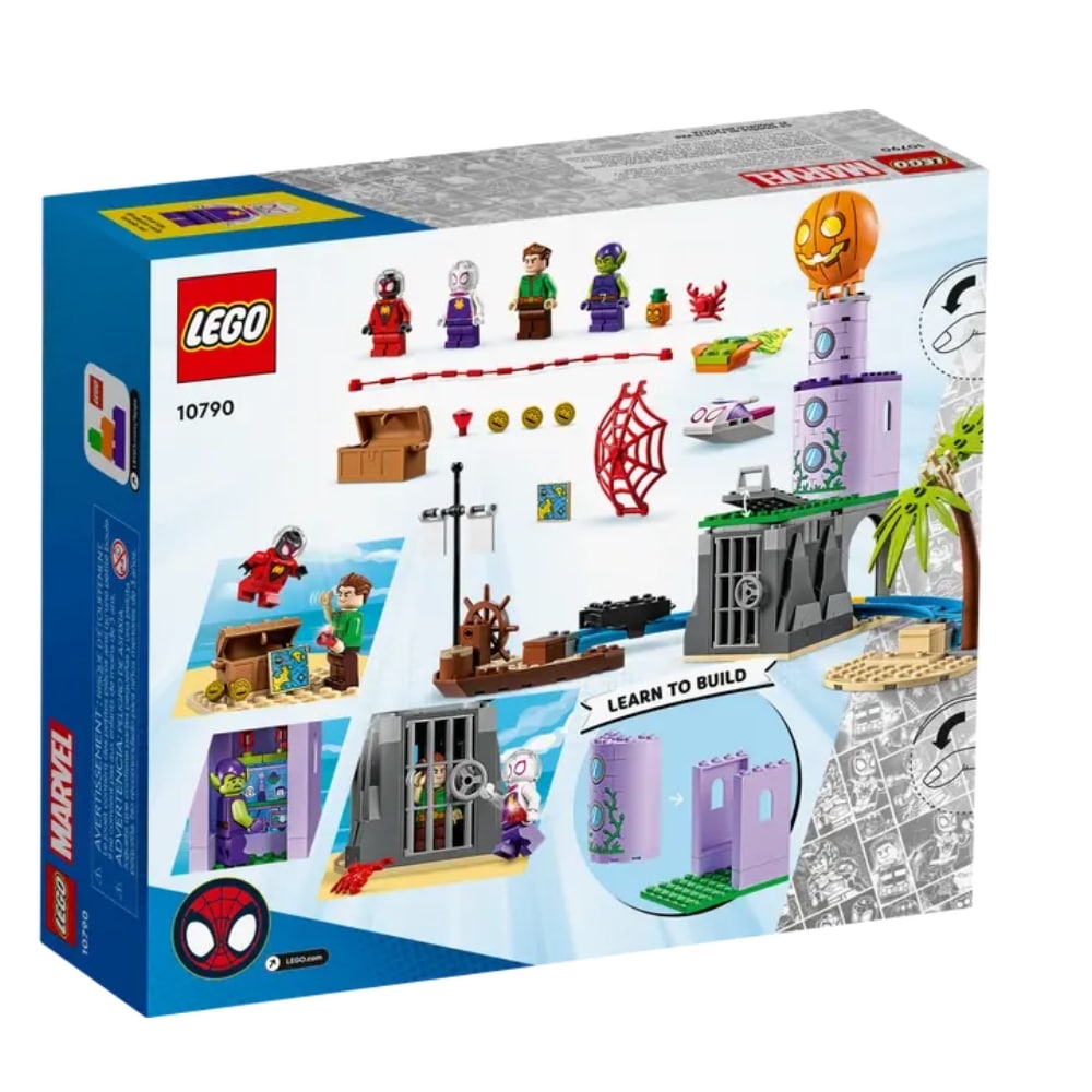 Lego Marvel 10790 Team Hämis Vihreän Menninkäisen majakalla – setti on täynnä tuttuja hahmo ja seikkailuja. Lähde sankareiden mukaan goblin-saarelle hakemaan aarre. Sisältää 4 minihahmoa Miles Morales, Ghostn, Sandmani ja Vihreä Menninkäinen, sekä merirosvolaivan hylyn, radan ja luolan ja muita tarvikkeita. Lego rakennelmien rakentaminen on hauskaa puuhaa. Sisältää 149 osaa. Ikäsuositus: 4+ vuotta.