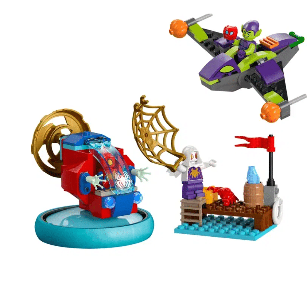 - Ajoneuvon ja Marvel-sankareita sisältävä lelusetti – Mukana Spidey, Green Goblin ja Ghost-Spider minihahmoina toimintaleikkeihin sekä iso aloituspalikka, jonka avulla rakentelu sujuu nopeasti ja helposti