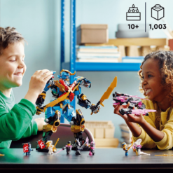 10 vuotta täyttäneille sopiva Nyan Samurai X ‑ROBOTTI (71775) setti herättää NINJAGO®: Crystallized ‑tv-sarjan jännittävät tarinat eloon. Lelusetti sisältää robotin, jonka polvet, kädet, jalat ja lanteet voi taivuttaa eri asentoihin ja jolla on 2 miekkaa, 2 jousitoimista asetta. Huikean robottilelun ohjaamoon voi laittaa Nya-hahmon.