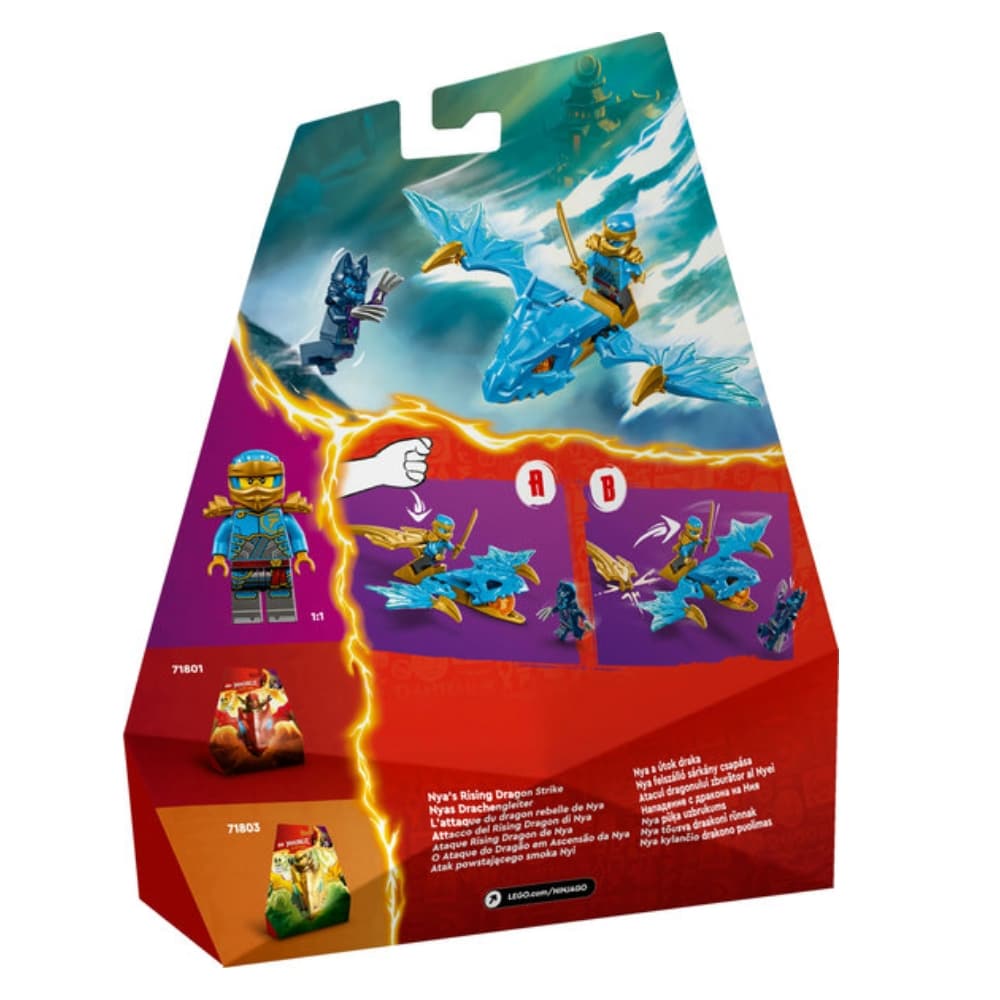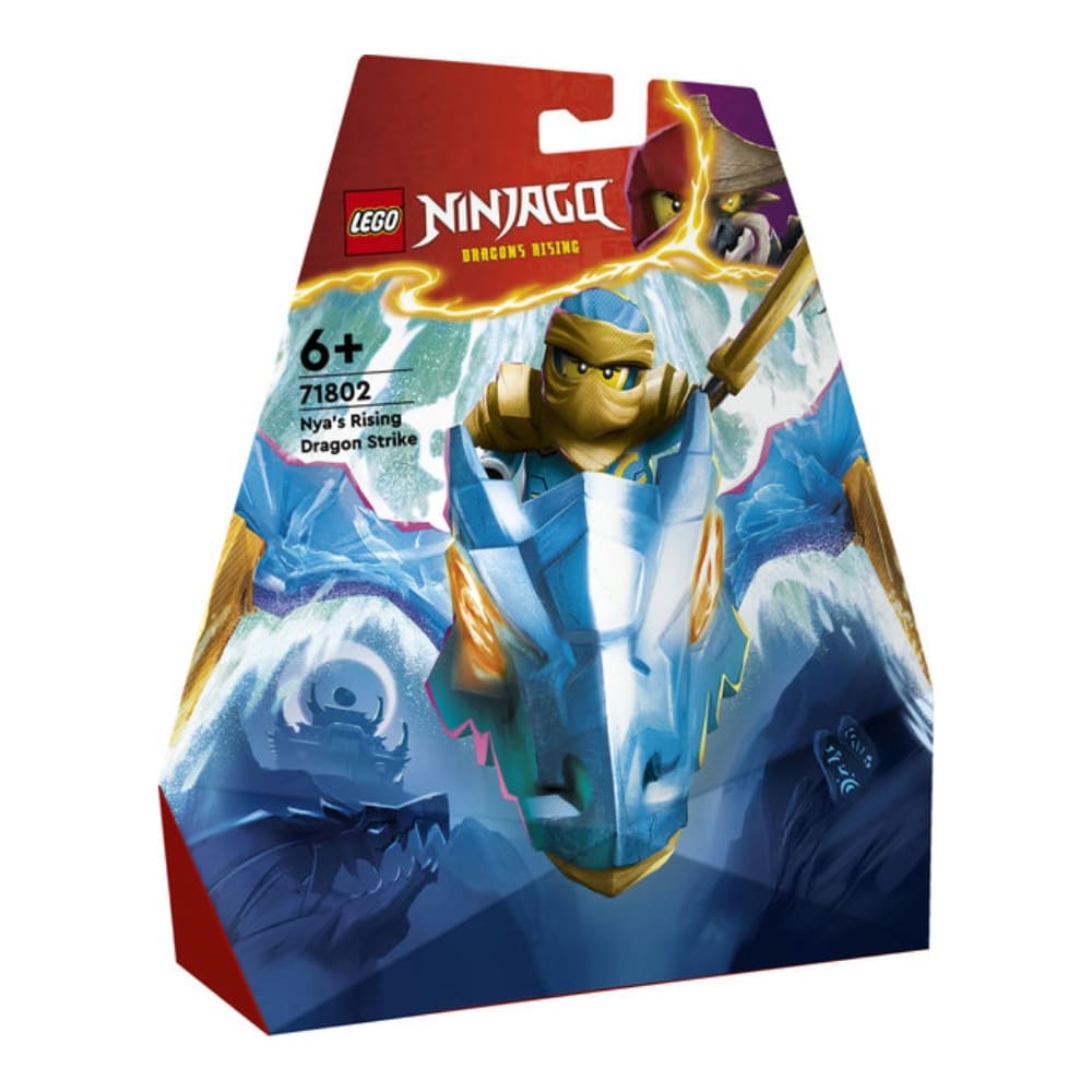 Yli 6-vuotiaat pojat ja tytöt leikkivät NINJAGO® Lohikäärmeiden nousu ‑TV-sarjan 2. kaudelta tuttuja vauhdikkaita seikkailuja Nyan lohikäärmehyökkäys (71802) LEGO® ninjalelusetin parissa. Rakenna kaikkien aikojen ensimmäinen LEGO® NINJAGO lohikäärmelelu, heilauta lohikäärmeen kultainen pyrstö alas ja uppoudu vauhdikkaisiin leikkeihin.