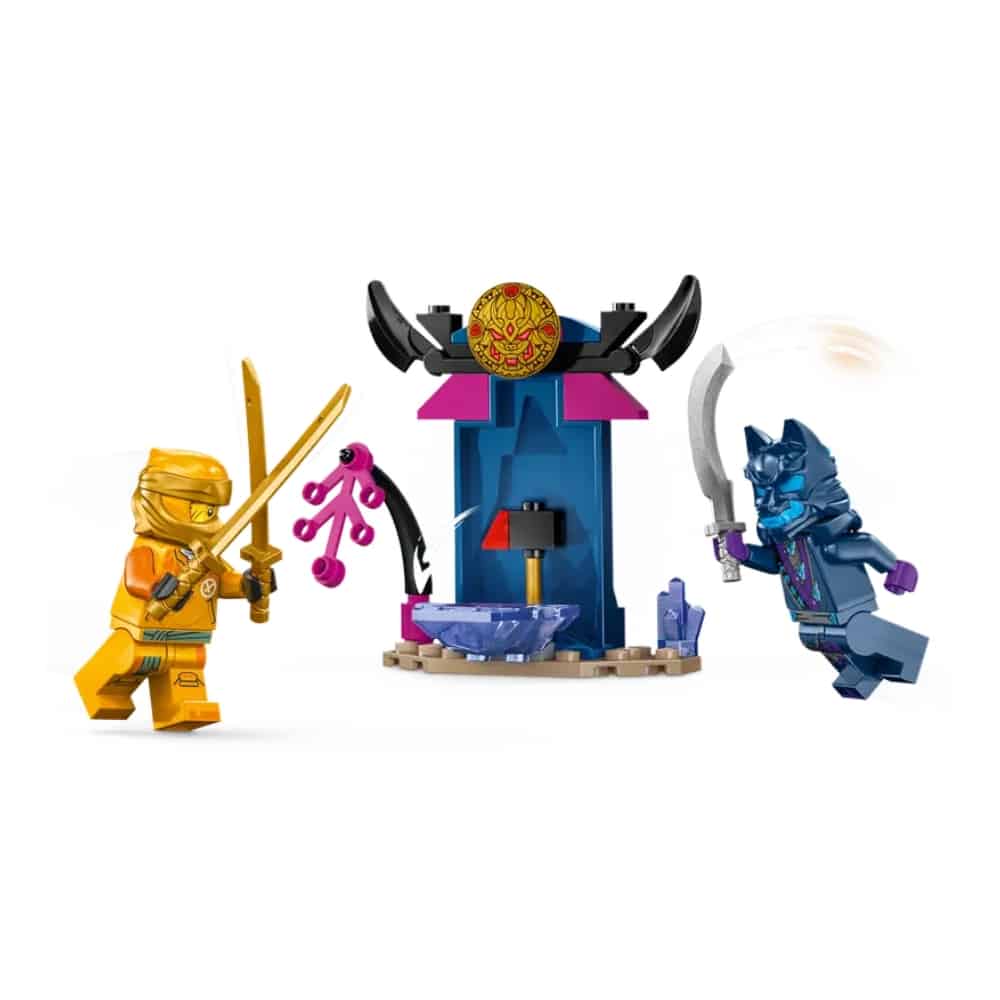 - 2 LEGO® NINJAGO® minihahmoa – Ninjaleikkisetti sisältää Arin-minihahmon katana-minimiekkoineen ja innostaa lapset vauhdikkaisiin roolileikkeihin susinaamioon sonnustautunutta ja miekalla varustautunutta soturia vastaan