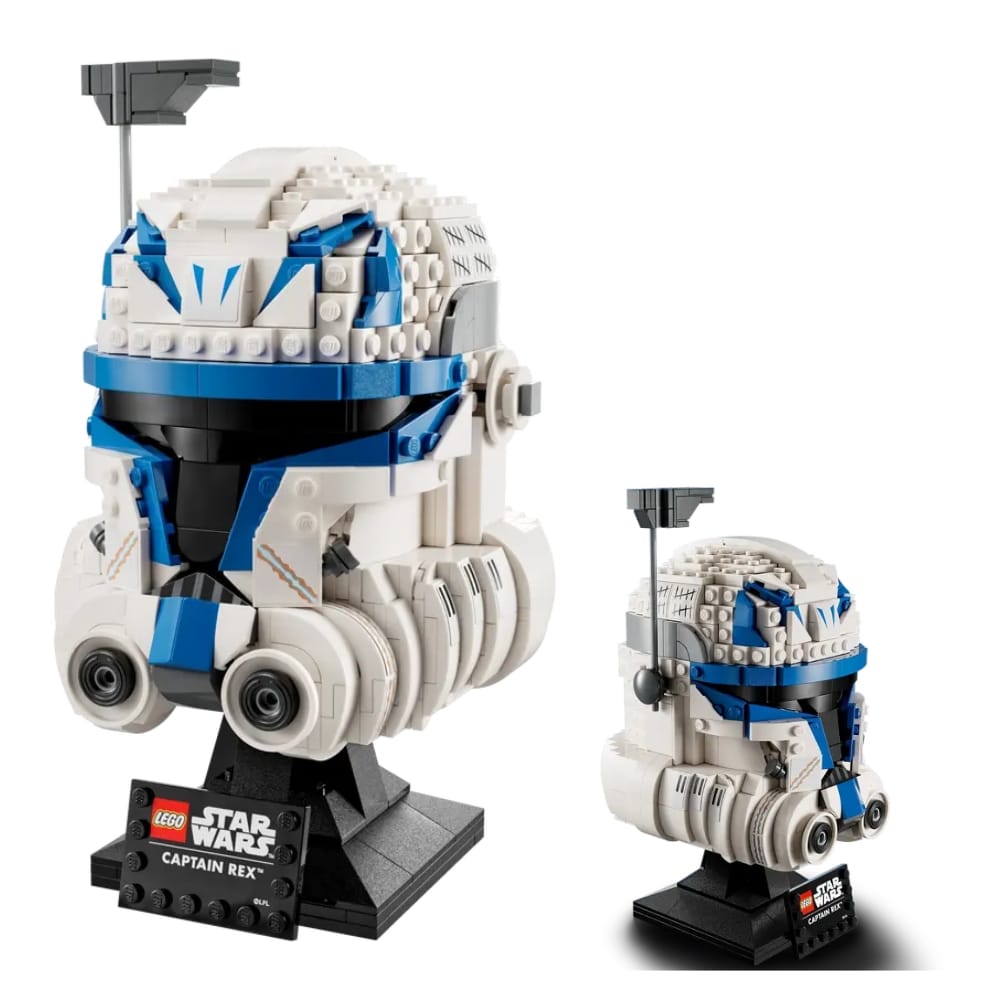 LEGO Star Wars 75349 Kapteeni Rexin kypärä – Star Wars -elokuvasta tutun kapteeni Rexin yksityskohtainen kypärä johdattaa sinut elokuvan maailmaan. Kypärä on upea koriste tai lahja Star Wars -fanille. Laita valmis kypärä esille rakennettavalle jalustalle esille, lisää nimikyltti jalustaan. Valmis kypärä on 21cm x 12cm x 13cm ja sisältää 854 osaa. Ikäsuositus: 18 + vuotta.