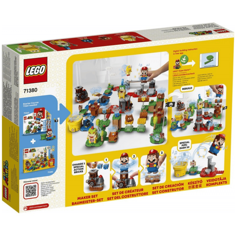 Lapset voivat muuntaa LEGO® Super Mario™ Aloitusrataansa ja laajennussarjojaan ja rakentaa ainutlaatuisia tasoja tämän jännittävän Ikioma seikkailusi -setin (71380) avulla. Siinä on mukautuskone, jolla voi valita aikakuution ja 2 esinekuution palkintoja. Tässä moduulirakennussarjassa on myös liukutaso, värillisiä LEGO osia, jotka aktivoivat LEGO® Mariossa™ (setti ei sisällä hahmoa) reaktioita, ja Erikoisputki: Dash 30, jonka avulla pelaajat voivat rakentaa ja kehittää uusia hienoja tasoja.