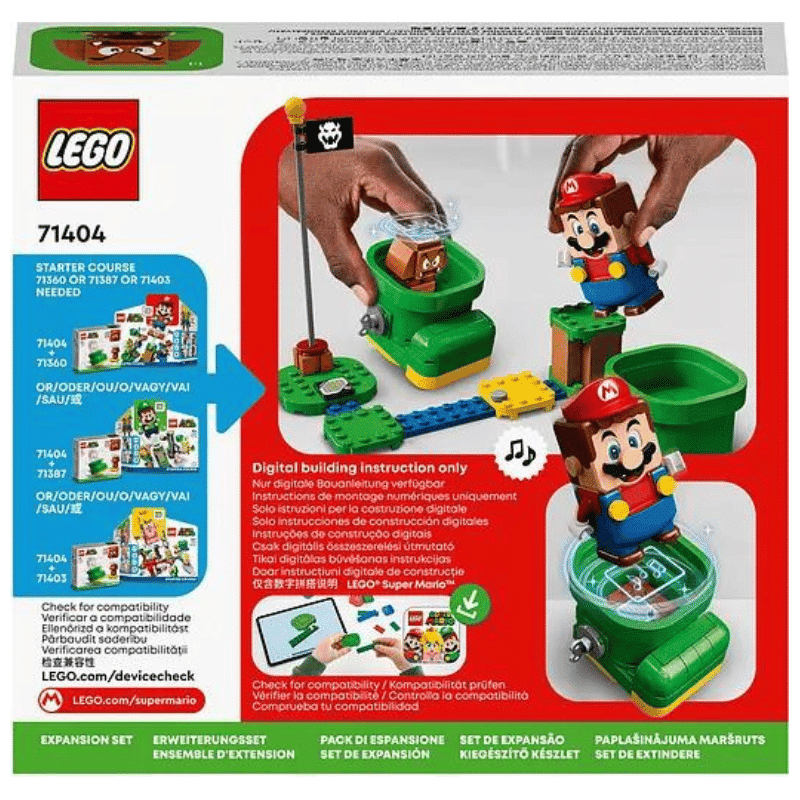 Valmistaudu LEGO® Super Mario™ seikkailuihin Goomban kenkä ‑laajennussarjalla (71404), joka on tarkoitettu yli 6-vuotiaille. Mukana on palikoista rakennettava Goomban kenkä sekä Goomban LEGO leluhahmo, jonka lapset voivat lisätä rakentamiinsa tasoihin. Auta LEGO® Mario™, LEGO® Luigi™ tai LEGO® Peach™ hahmoja (eivät sisälly settiin) viemään kenkä, hyppele ja tee voltteja ja kerää digikolikoita. (Huomaathan, että interaktiivisiin leikkeihin tarvitaan aloitusrata 71360, 71387 tai 71403.)