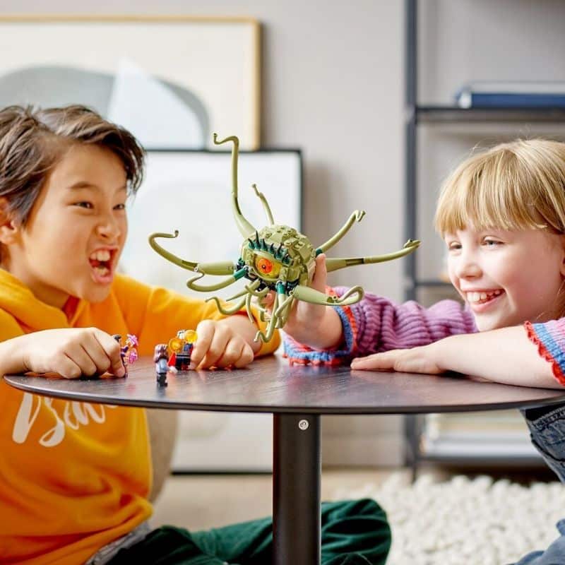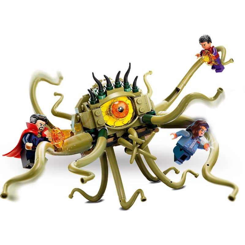 Mitä tahansa voi tapahtua, kun Marvelin supersankarit kohtaavat vihaisen, yksisilmäisen jättiolion, jolla on pitkät, vihreät lonkerot. Monipuolisessa setissä on 3 suosittua minihahmoa LEGO Marvel maailmasta: irrotettavalla viitalla varustettu Doctor Strange, Wong ja America Chavez. Yksisilmäisellä vihreällä hirviöllä on pitkät, liikkuvat raajat, jotka saa väännettyä erilaisiin asentoihin, jotta hirviö olisi mahdollisimman hirvittävä. Kun päivän hirviötaistelut ovat tauonneet, lonkerokasa näyttää kerrassaan kamalan upealta lastenhuoneen koristeena. Ilmaisessa LEGO Building Instructions sovelluksessa on digitaaliset ohjeet, joiden zoomaus-, kierto- ja tarkastelutyökaluilla lapset voivat hahmottaa, kuinka rakentelu etenee. Oikeasti toteutettu esimerkkimalli auttaa nuorimpia rakentelijoita.