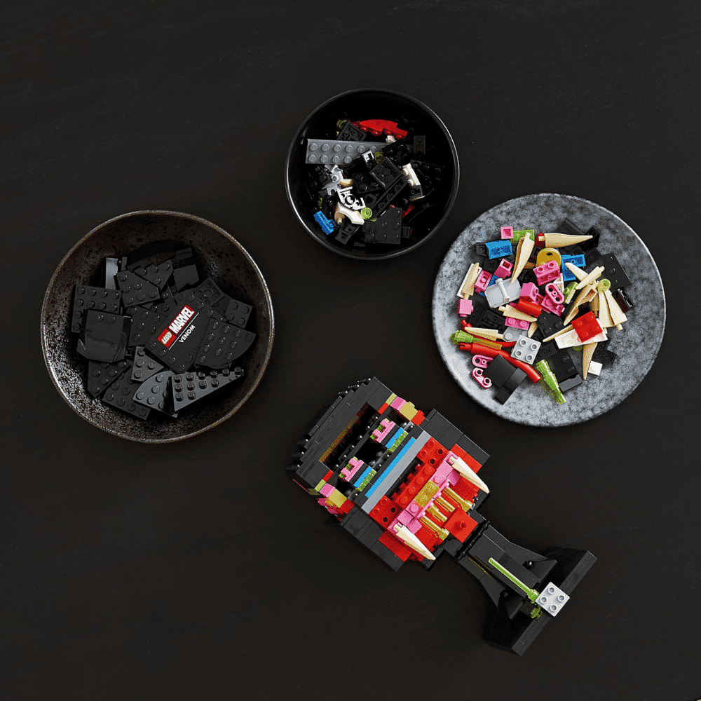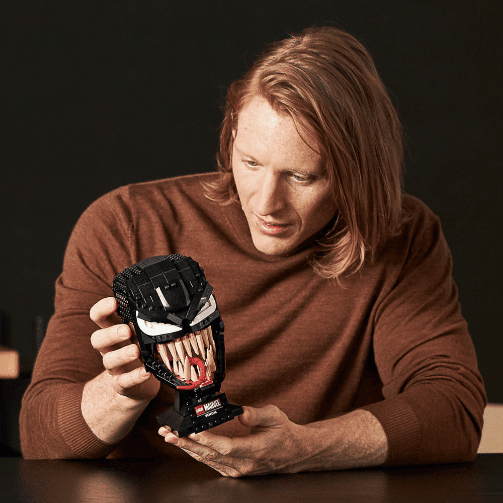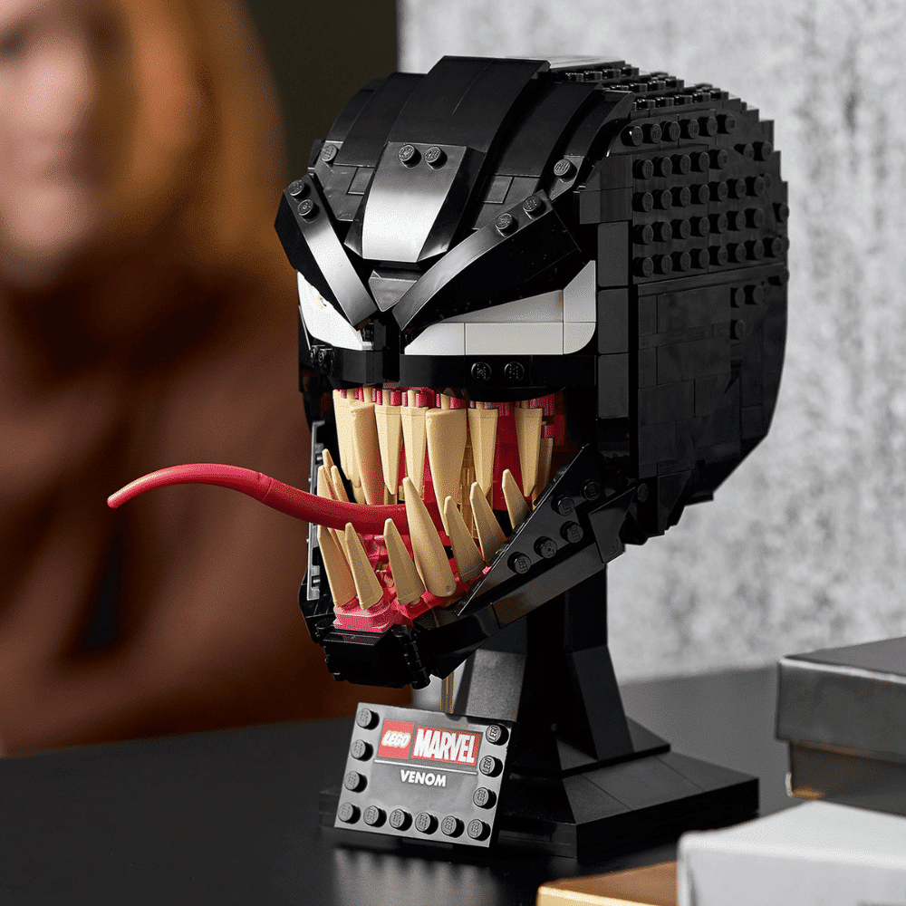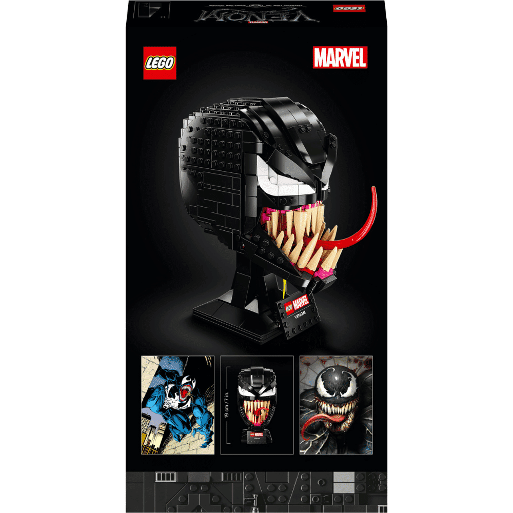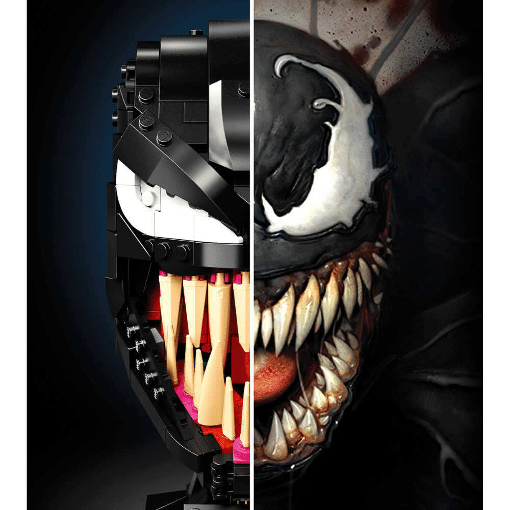 Venomin ja Spider-Man-elokuvien fanit uppoutuvat innolla palkitsevan rakennuselämyksen pariin kootessaan kammottavan, avaruudesta tulleen symbiontin aitoine yksityiskohtineen. Hahmolla on matala, musta otsa, ja karmaisevan suuressa suussa on tikarinterävät hampaat sekä pitkä ja notkea kieli. Tuloksena on hätkähdyttävä koriste, jonka esikuvasta ei voi erehtyä. Tukevalla jalustalla, johon on kiinnitetty nimilaatta, tämä hätkähdyttävä malli näyttää entistä vaikuttavammalta muiden sarjakuvista tuttujen LEGO rakennelmien rinnalla.