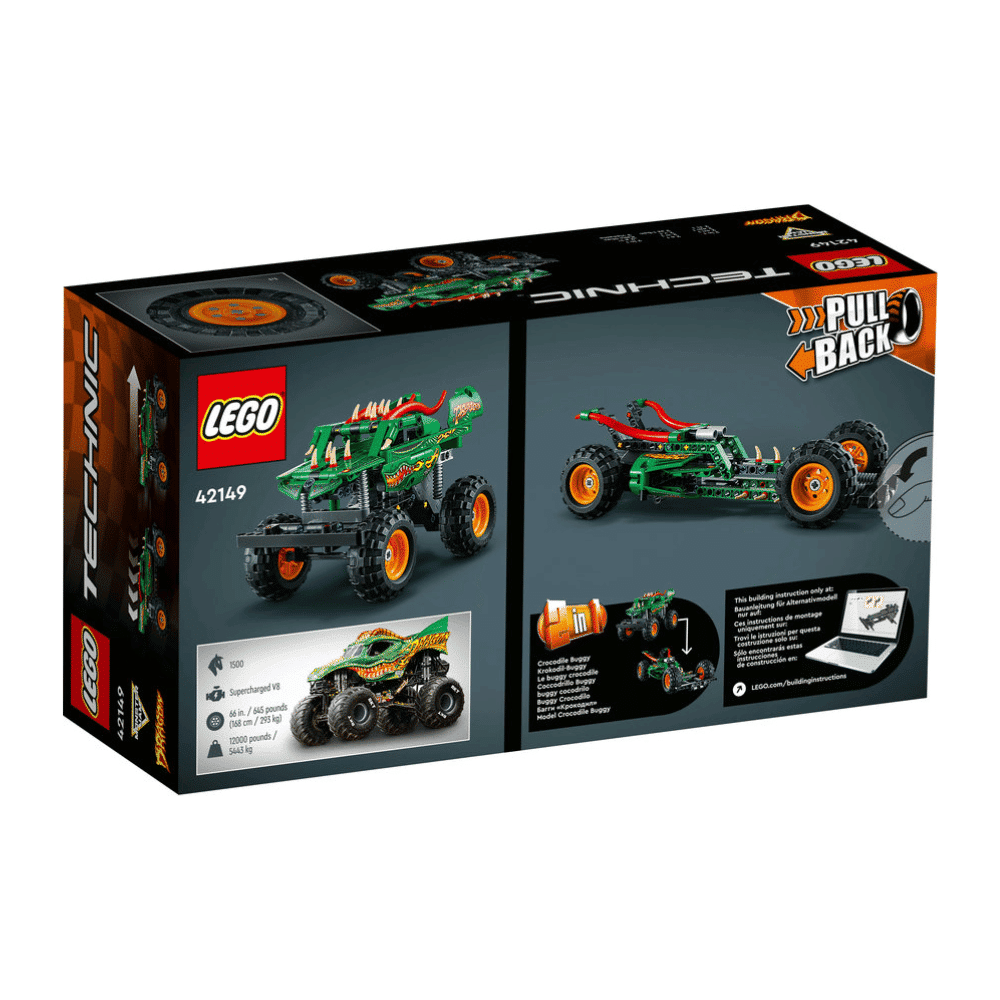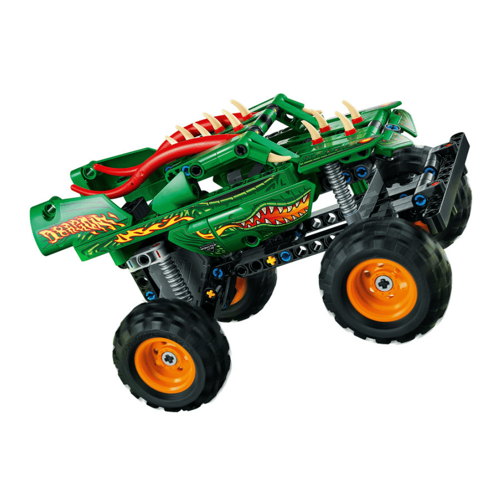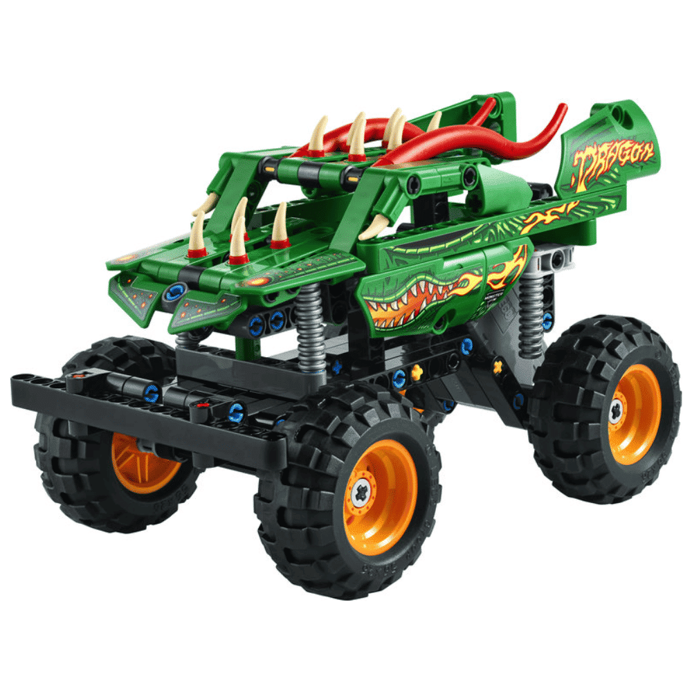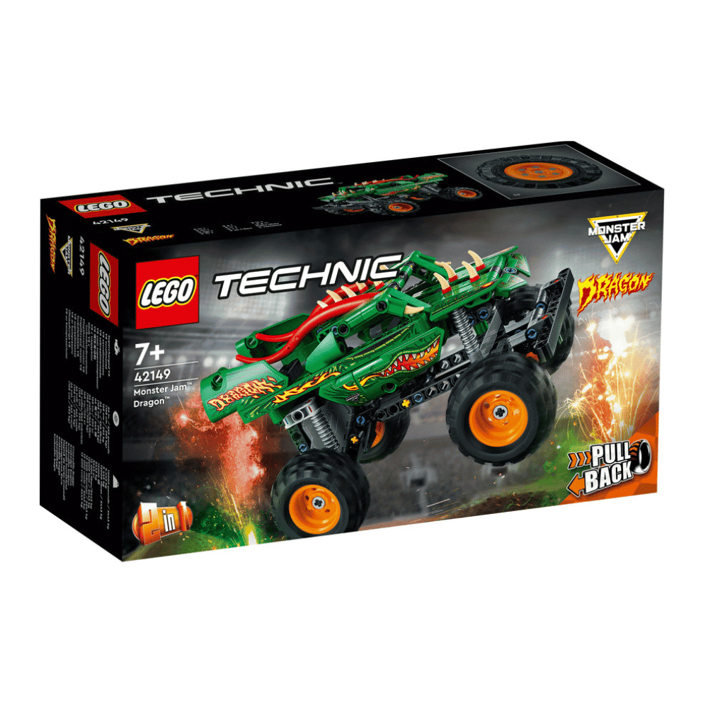 LEGO Technic 42149 Monster Jam Dragon Vetomoottorilla varustetun LEGO® Technic Monster Jam Dragon™ (42149) monsteriauton yli 7-vuotiailla Monster Jam™ ‑faneilla riittää yllin kyllin tutkittavaa. Autossa on upeat lohikäärmeen piikit ja sarvet sekä realistiset kuviot ja värit. Tämän leluauton parissa lapset voivat uppoutua oikeilta Monster Jam ‑areenoilta tuttuihin juttuihin.