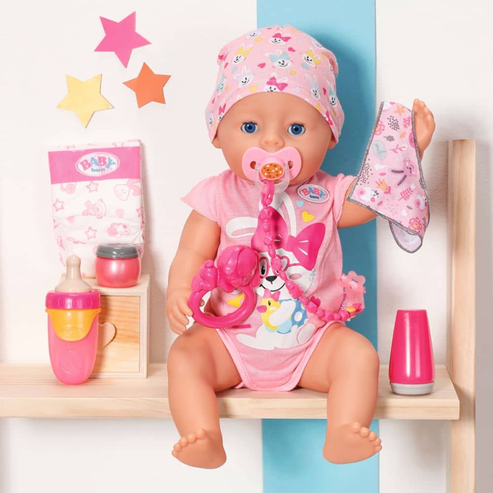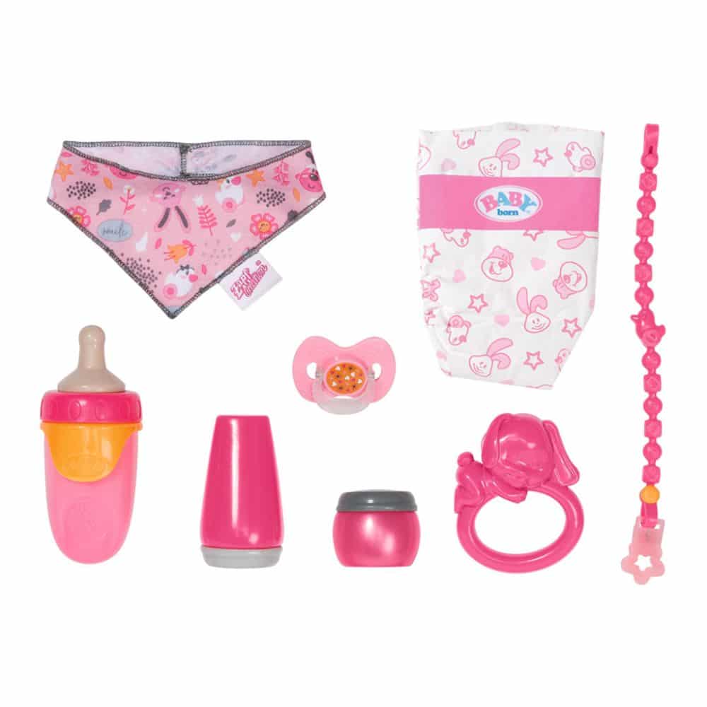 - Includes 8 starter accessories; bottle, nappy, dummy and more!