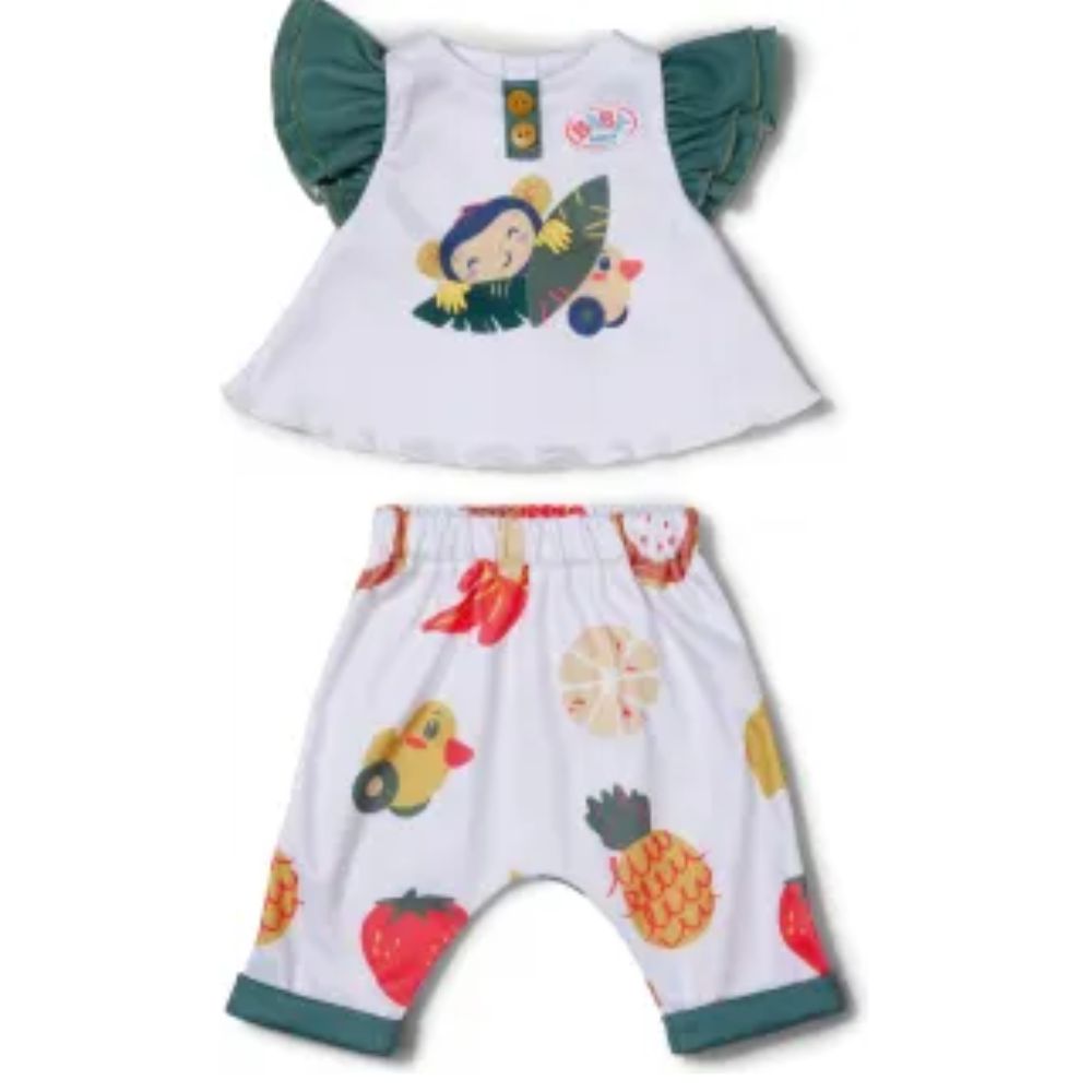 BABY born -nuken apina-asusetti on suunniteltu erityisesti 43 cm kokoisille nukeille, tuoden leikkeihin ripauksen viidakon tunnelmaa ja iloista värikkyyttä. Tämä asu inspiroi lapsia mielikuvituksellisiin seikkailuihin yhdessä heidän suosikkinukkensa kanssa.