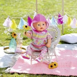 Hauska, kuvioillinen ja yksityiskohtainen asu 43 cm kokoiselle Baby Born nukelle. Tuote sisältää ponchon, trikoot ja kengät nukelle. Hieno lahjaidea!