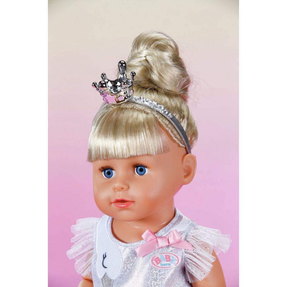 – BABY born ballerina -asu 43 cm, joka koostuu glittermekosta, hiusnauhasta kruunulla, kengistä