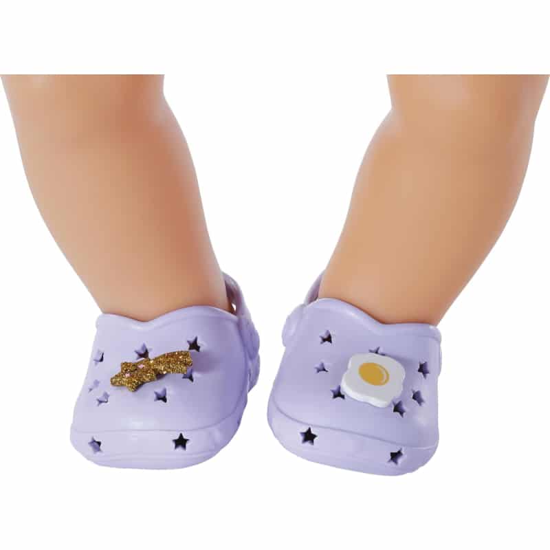 Suloiset ja kevyet Baby Bornin kesäkengät, joita voi koristella mukana tulevilla koristenapeilla. Lajitelmassa on neljää eri väriä.