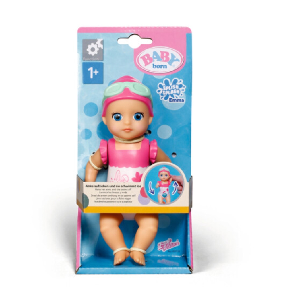 Emma-nukella on mekaaninen uintitoiminto, joka ei vaadi paristoja. Lapsi voi vetää nuken kädet taakse ja vapauttaa ne vedessä – nukke lähtee uimaan eteenpäin, mikä ilahduttaa ja viihdyttää toistuvasti.
