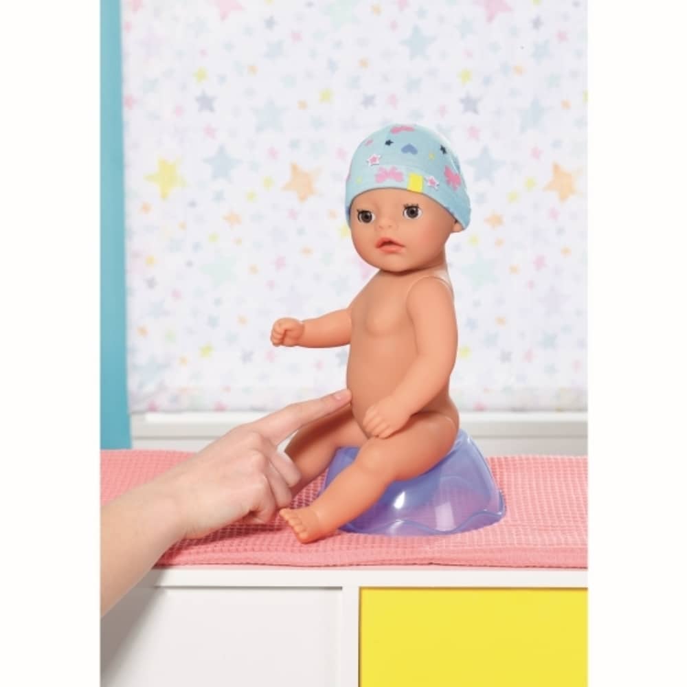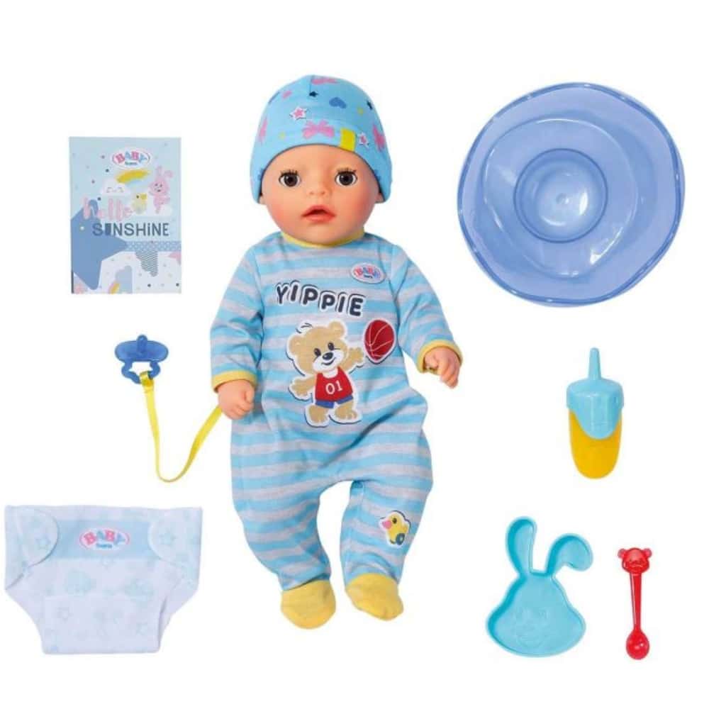 Tämä ihana nukke on valmiina hoivattavaksi. Nukkevauva on täydellinen yli 2-vuotiaille nukkevanhemmille pienen koonsa vuoksi. Baby Born nukke nauttii syömisestä ja juomisesta. Mukana tulee nuken ja vaatteiden lisäksi nukelle sopiva lautanen, lusikka, tutti, tuttipullo, potta, vaippa ja syntymätodistus. Pidä vauvanukesta hyvää huolta! Voit kylvettää, syöttää ja hoivata sitä. Nukke myös itkee, kastelee vaippansa ja käy potalla aivan kuten oikea vauva.