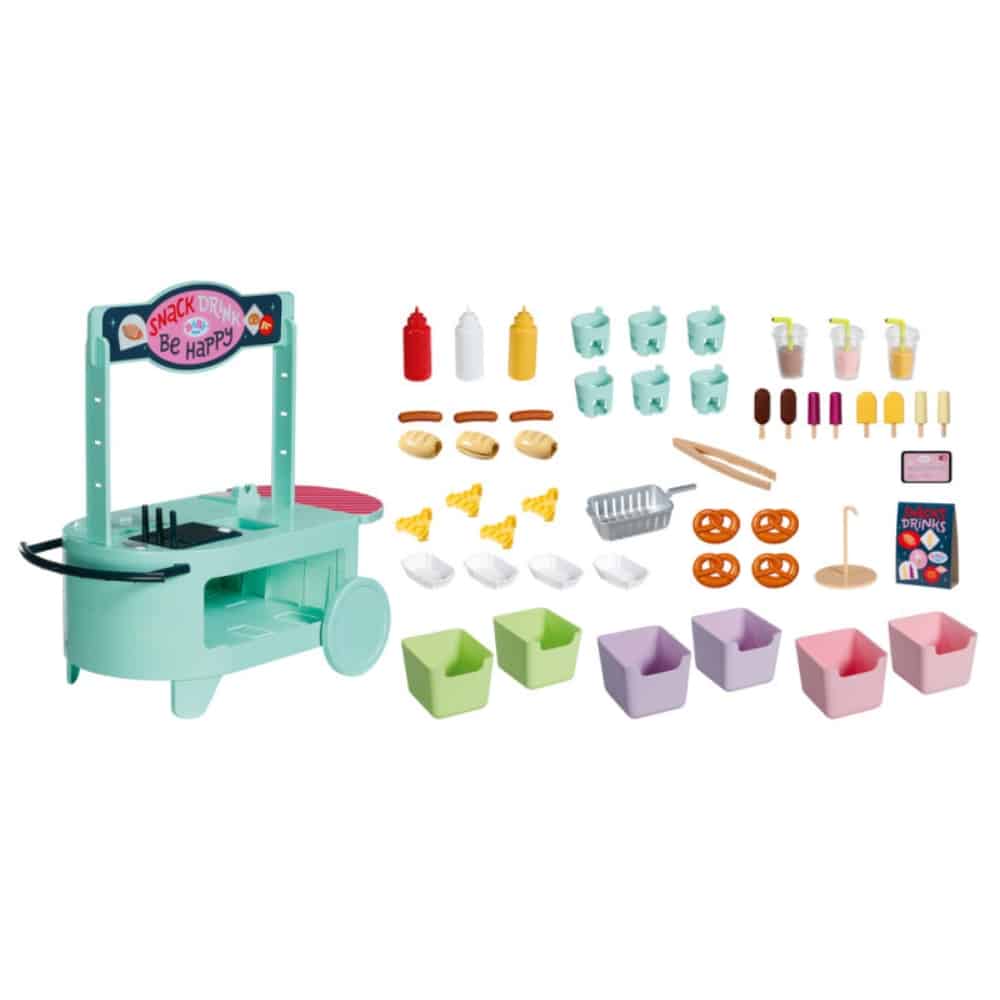 Baby Born ruokakärry sisältää myös menukortin ja paljon leikkiruokatarvikkeita.