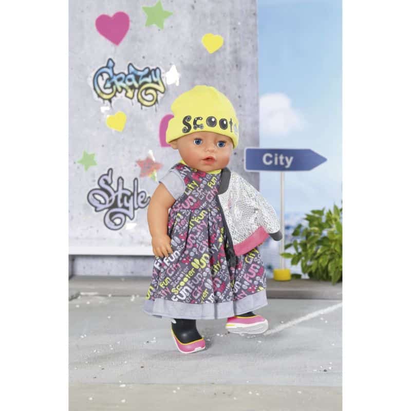 Kun kaipaat Baby Born -nukellesi viimeisteltyä tyyliä, on aika kaivaa esille Baby Born City Deluxe Style-asusetti! Värikäs asusetti sisältää yksityiskohtaisesti koristeltuja asusteita, jotka sopivat 39-46 cm kokoiselle nukelle.