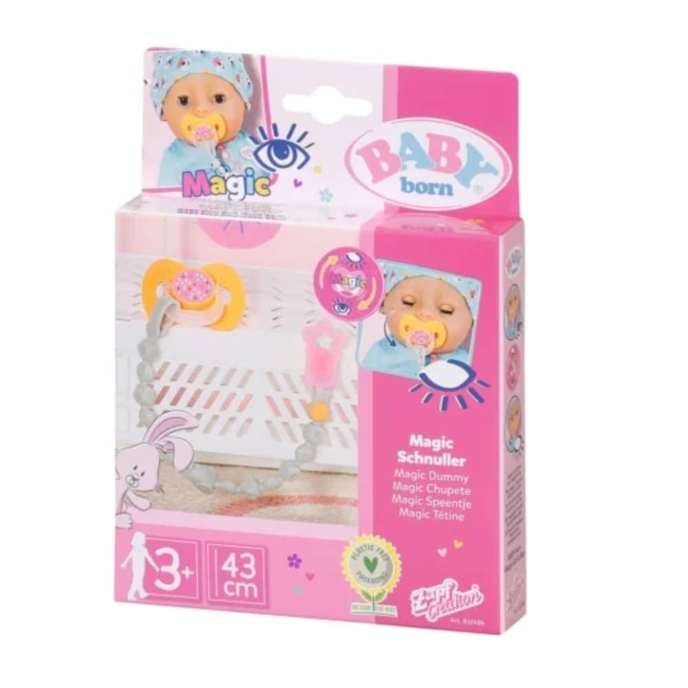 Tutti Baby Born nukelle. Tutissa on magneetti, jonka avulla Magic nuken silmät sulkeutuvat tuttia kääntämällä.