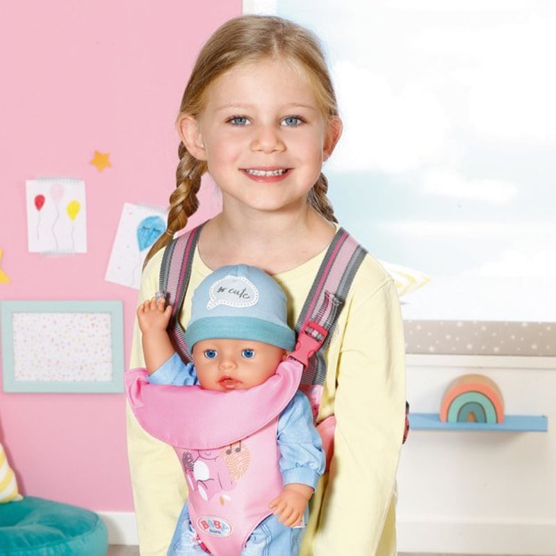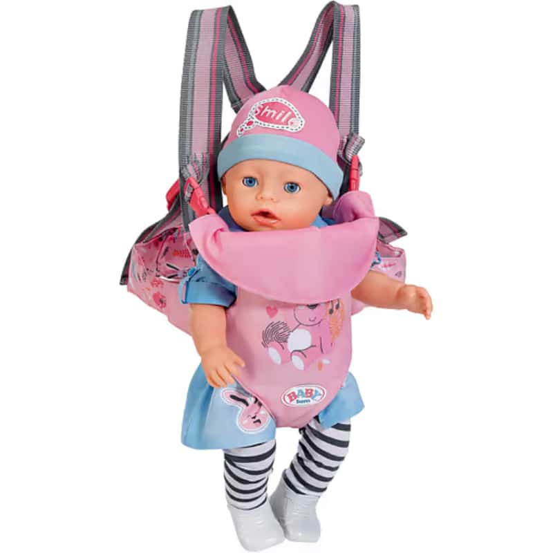 Baby Born -rintareppu kuljettaa nukkesi kätevästi mukanasi minne ikinä menetkin! Säädettävillä olkahihnoilla olevaa rintareppua on helppo ja tukeva kantaa. Rintarepun avulla pidät Baby Born-nuken aina lähelläsi! Soveltuu 34-46 cm kokoisille nukeille.