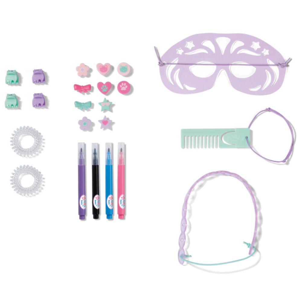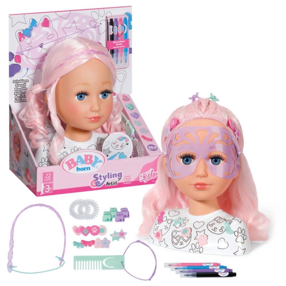 - Pakkaus sisältää kampauspään, meikkikynän, hiustarvikkeita ja meikkisapluunan.