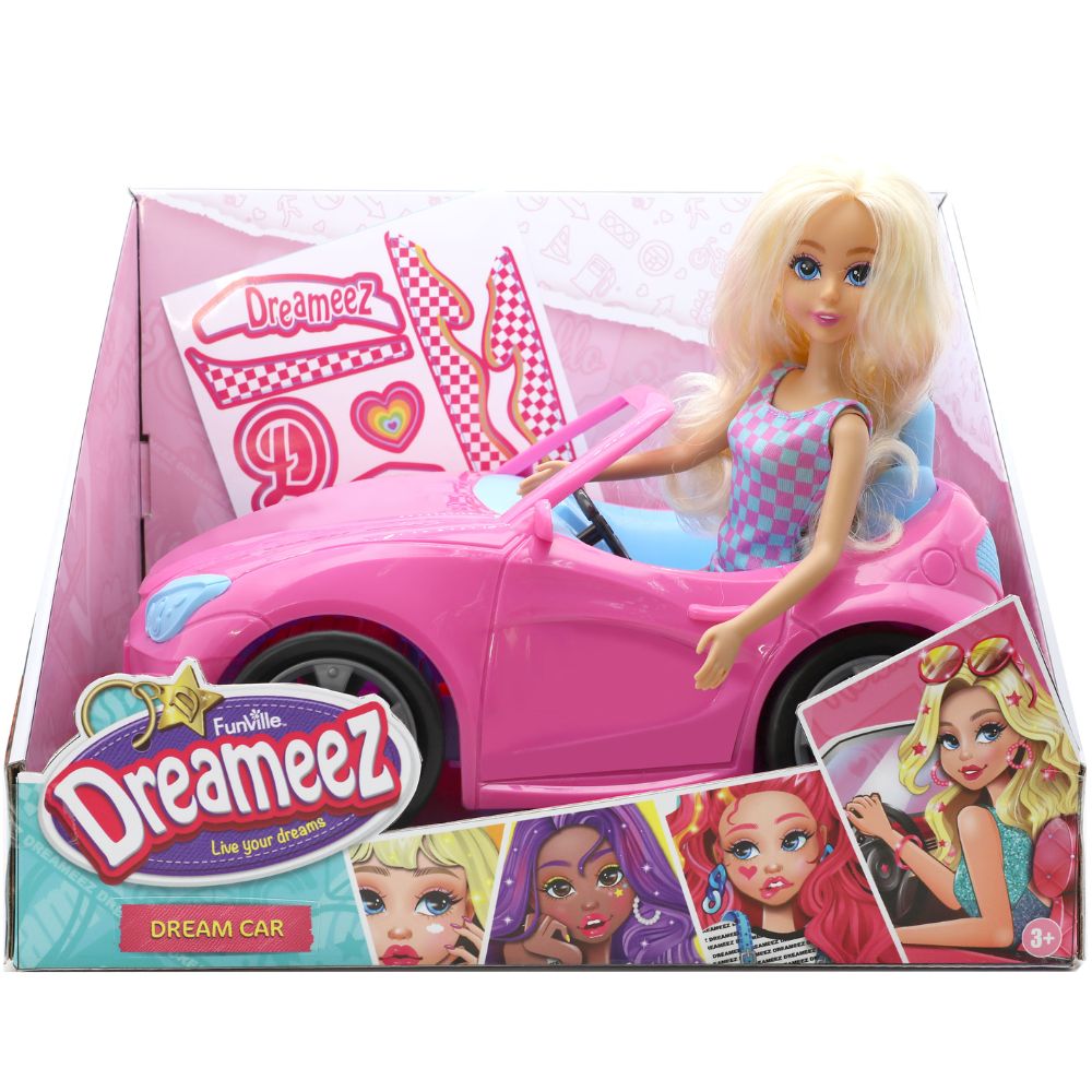 Pinkki avoauto kuljettaa Dreameez-nuken ystävien luokse. Pakkaus sisältää avoauton, jossa on tilaa kahdelle nukelle ja yhden Dreameez-muotinuken.