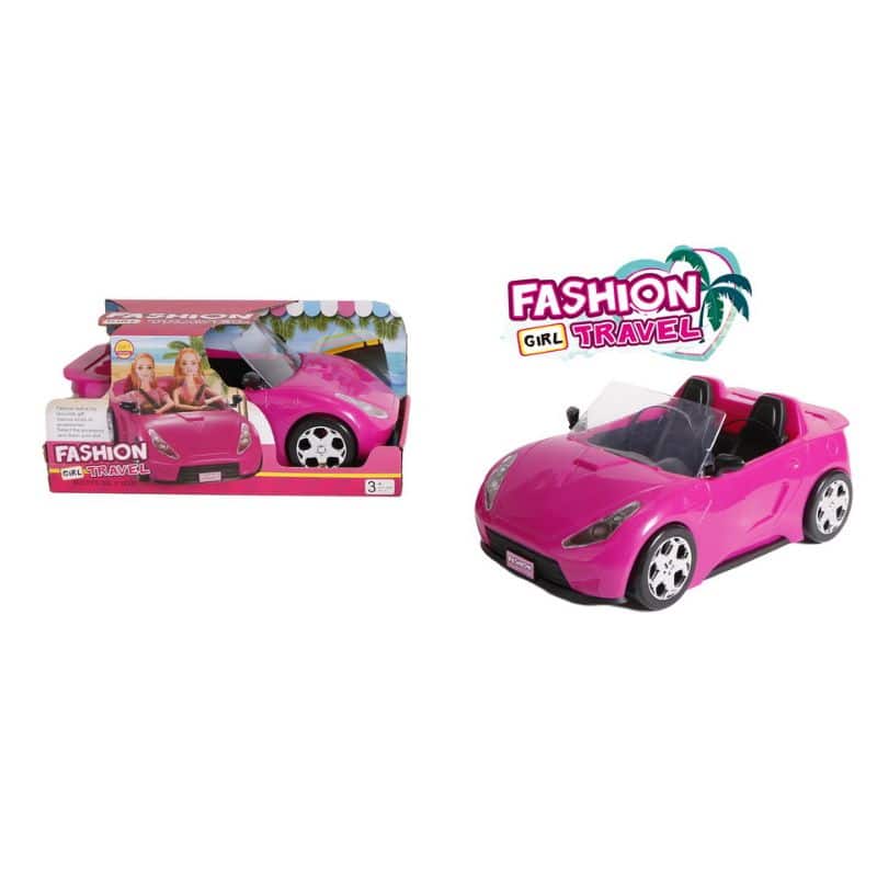Näyttävä avoauto, jossa on paikat kahdelle muotinukelle. Jokaisen pikkutytön unelma lahja!