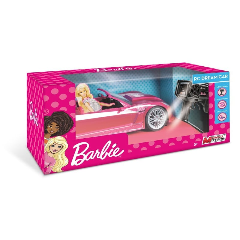 Barbie-leikit saavat vauhtia uudesta kauko-ohjattavasta autosta. Se on tyylikkään pinkki ja virtaviivainen. Autossa on toimivat ajovalot ja sen pituus on 40 cm. Autoa ohjataan helppokäyttöisellä GHz-ohjaimella. Barbie-nukke ei sisälly pakkaukseen.
