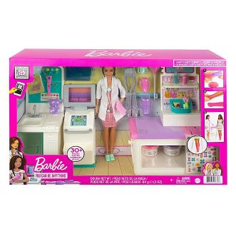 Barbie lääkäriasema Fast Cast Clinic sisältää kaiken mitä tarvitset omaan klinikkaan yhteensä 30 osaa! Pakkauksessa on muun muassa hoitopöytä, kepit, kipsi, siteet, leukatuki, nalle, röntgenlaite, sekä itse lääkäri lääkäritakilla ja stetoskoopilla. Upea lahjaidea!