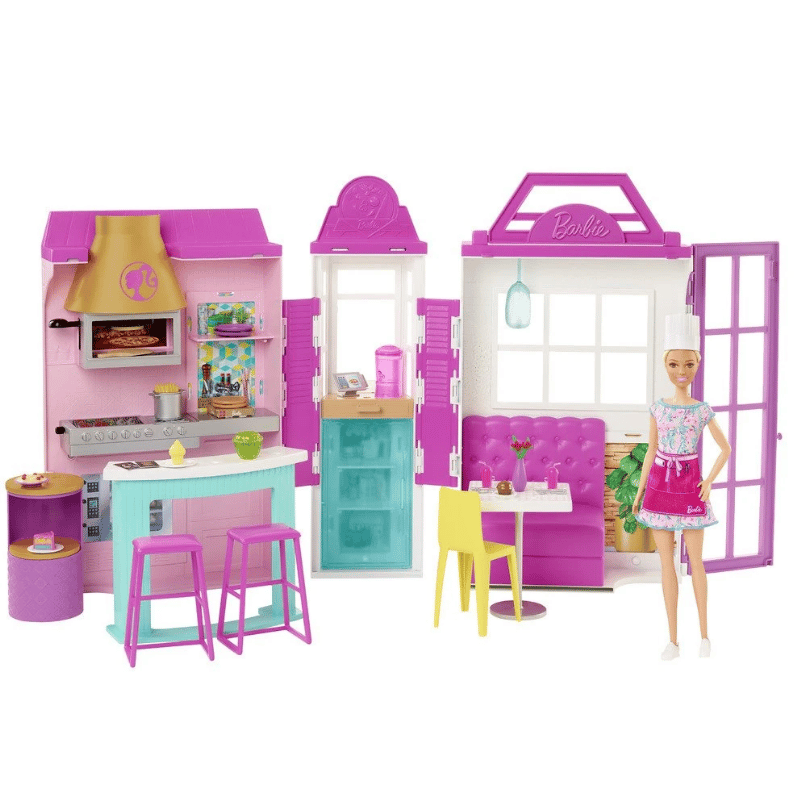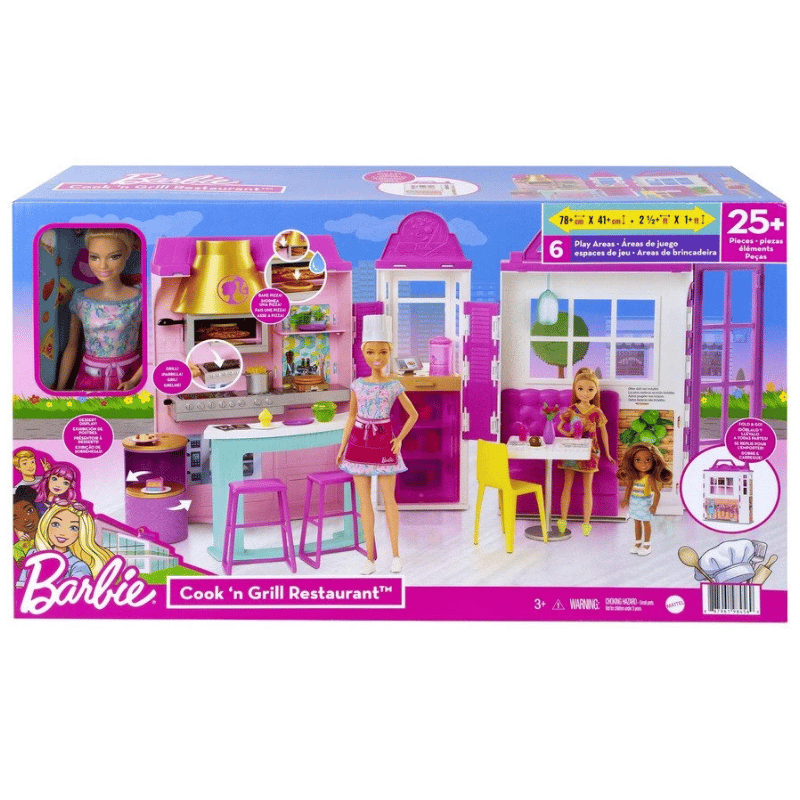 - Tervetuloa Barbien ravintolaan! Barbien ravintolassa valmistat ja tarjoilet herkulliset ateriat ystävillesi. Ravintolassa on pyörivä grilli, väriä vaihtava pizza ja paljon muita tarvikkeita. Barbien ravintola taittuu helposti mukaan, jotta voit jatkaa leikkiä missä vaan! Barbie nukke sisältyy pakkaukseen.