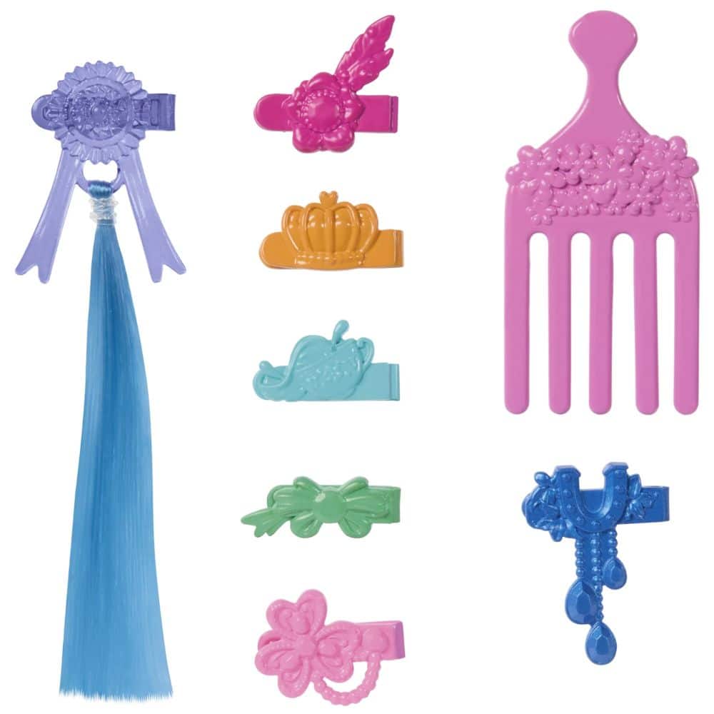 Tornado on Barbien poni, jonka kanssa Barbie osallistuu kilpailuihin. Koristele ponin harja mukana tulevilla koristeilla, niin se on valmis esiintymään.