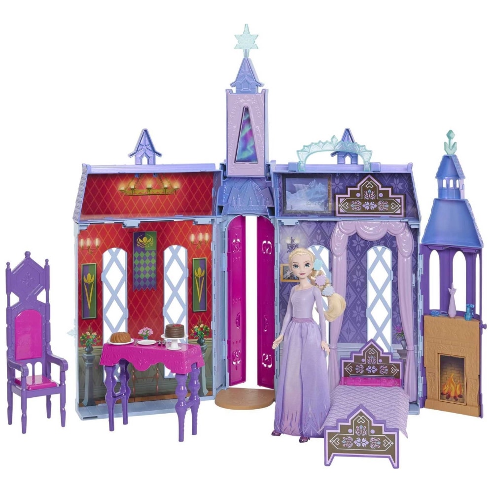 - Arendelle Castle opens into four play areas. Replay familiar events from the movies or experience completely new adventures. The playset includes a foldable castle, an Elsa doll and more than 15 accessories. 3+