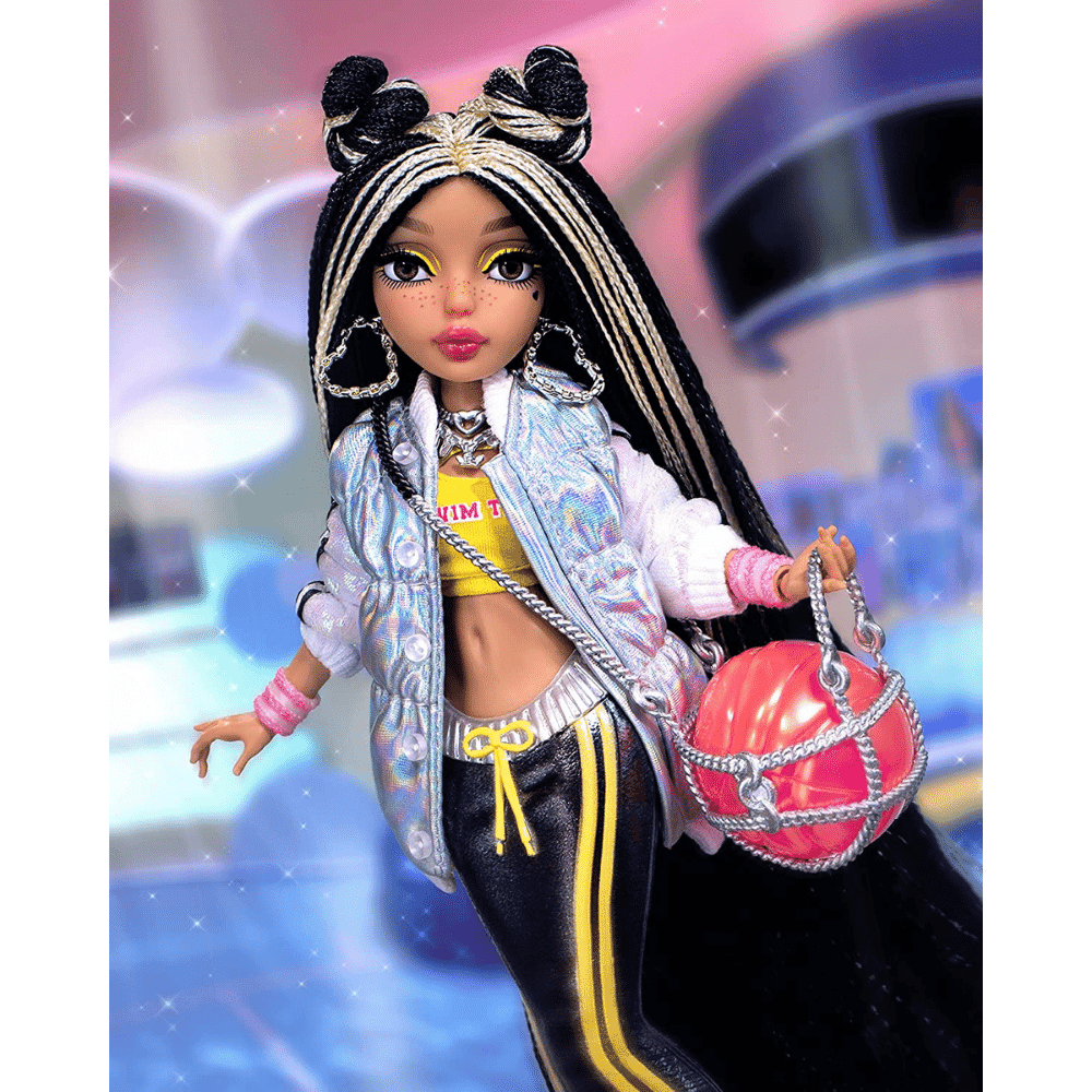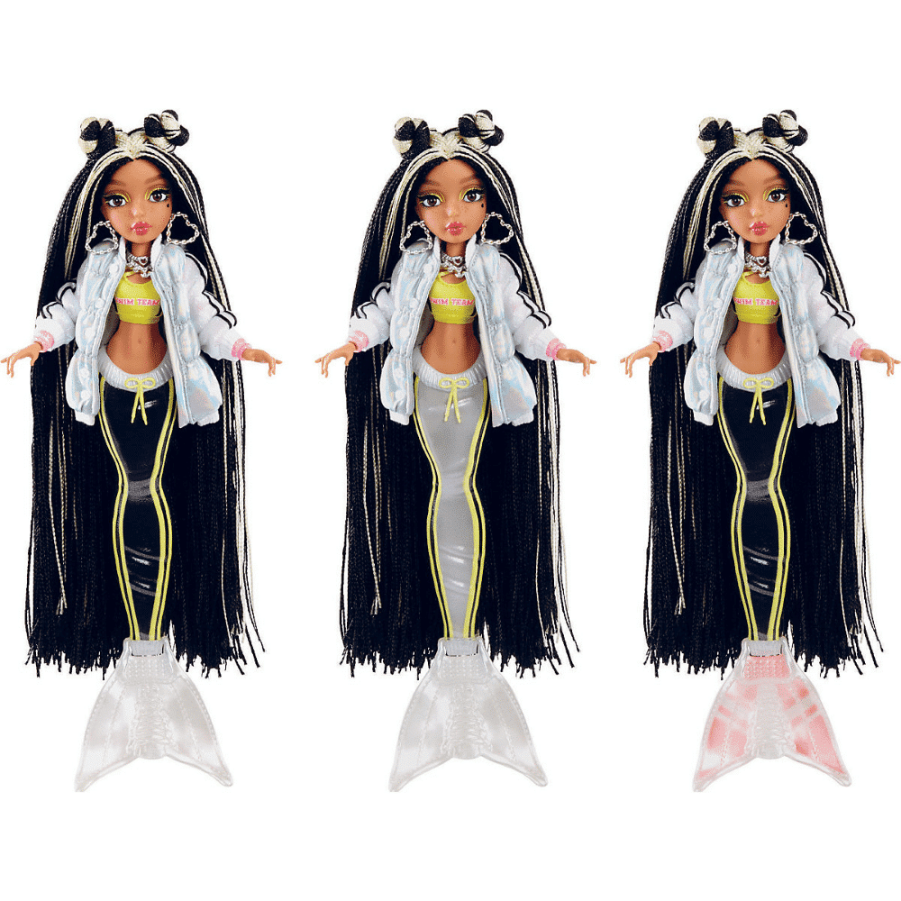 Lumoavat merenalaiset luovat leikit voivat alkaa nyt tällä upealla uutuus afro tyylisellä Mermaze merenneito Jordie-muotinukella! Mermaze merenneito Jordiella on huikean pitkät letitetyt hiukset, lasisilmät, pitkät ripset ja liikkuva evä. Uudistuneen nuken pyrstö vaihtaa väriä vedessä. Merenneidon pyrstön evä toimii jalustana.