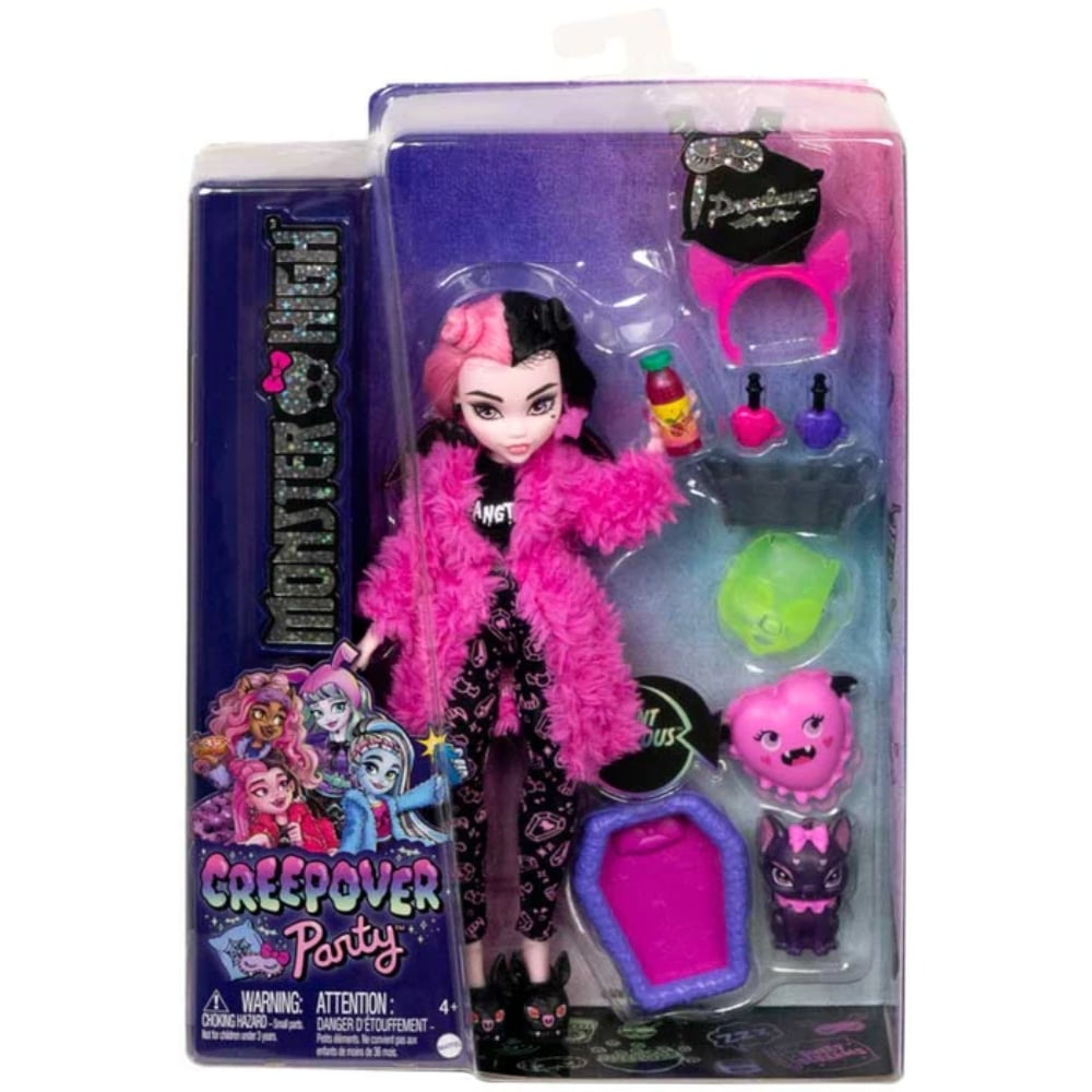 Liity Monster High:n pyjama bileisiin näiden creepover party nukkejen kanssa. Samassa creepover sarjassa on 4 eri nukkea jotka myydään erikseen.