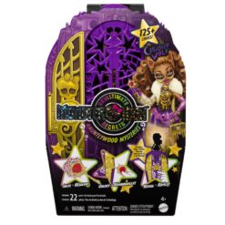 Koristeellisten ovien takaa löytyy Clawdeen Wolf -muotinukke ja upeita vaatteita ja asusteita, joilla loihdit kymmeniä erilaisia persoonallisia tyylejä Monster High -koulupäiviin.