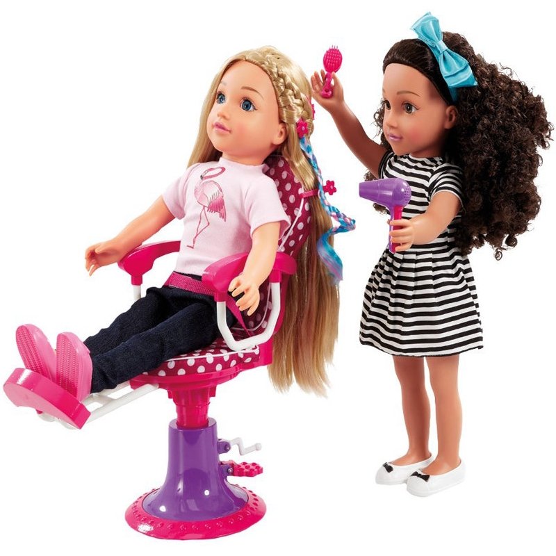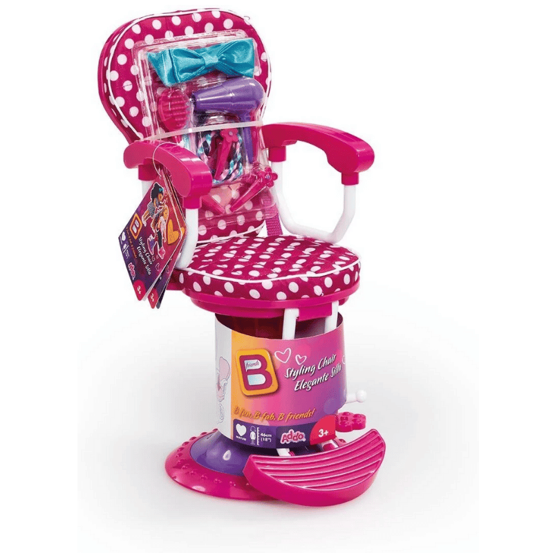 Sisältää: Kampaajan tuoli, rusetti, hiusharja, hiustenkuivaaja, pinnejä ja hiustenpidennys.