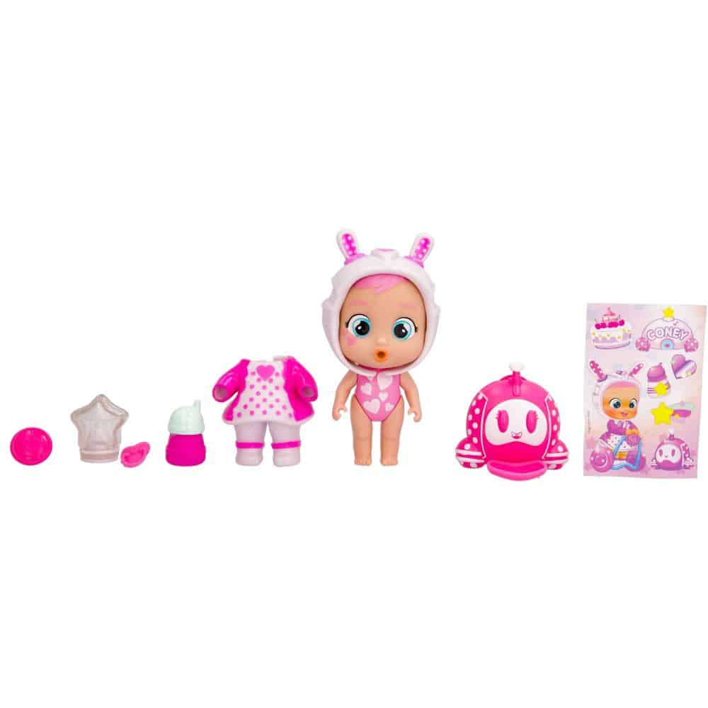 Cry Babies Magic Tears -talosta irtoaa sähköpotkulauta kruisailua varten. Tiputa nuken kyyneleet talon katolla olevaan tähteen, niin se hohtaa pimeässä! Nukella on liikuteltavat nivelet ja irrotettava asu.