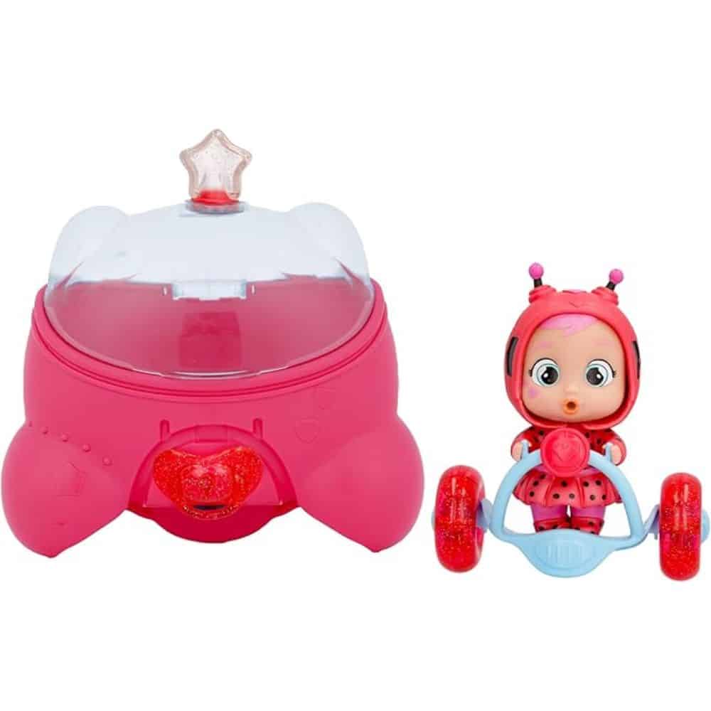 Cry Babies Magic Tears -talosta irtoaa sähköpotkulauta kruisailua varten. Tiputa nuken kyyneleet talon katolla olevaan tähteen, niin se hohtaa pimeässä! Nukella on liikuteltavat nivelet ja irrotettava asu.