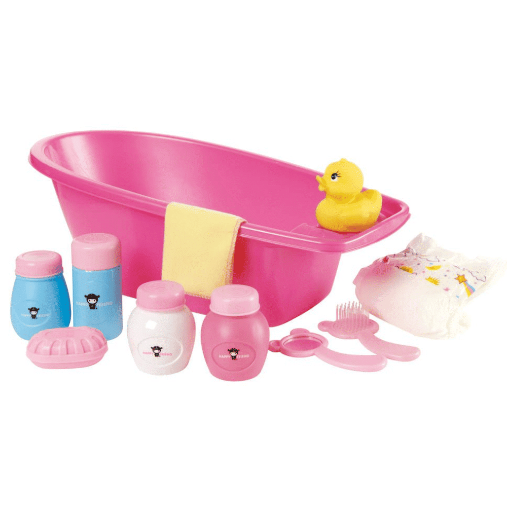 Happy Friend Nuken amme ja tarvikkeilla pääset kylvettämään nukkea. Kaikki tarpeellinen sisältyy: Harja, peili, vaippa, pesulappu, amme ankka. Sekä muita tarvikkeita