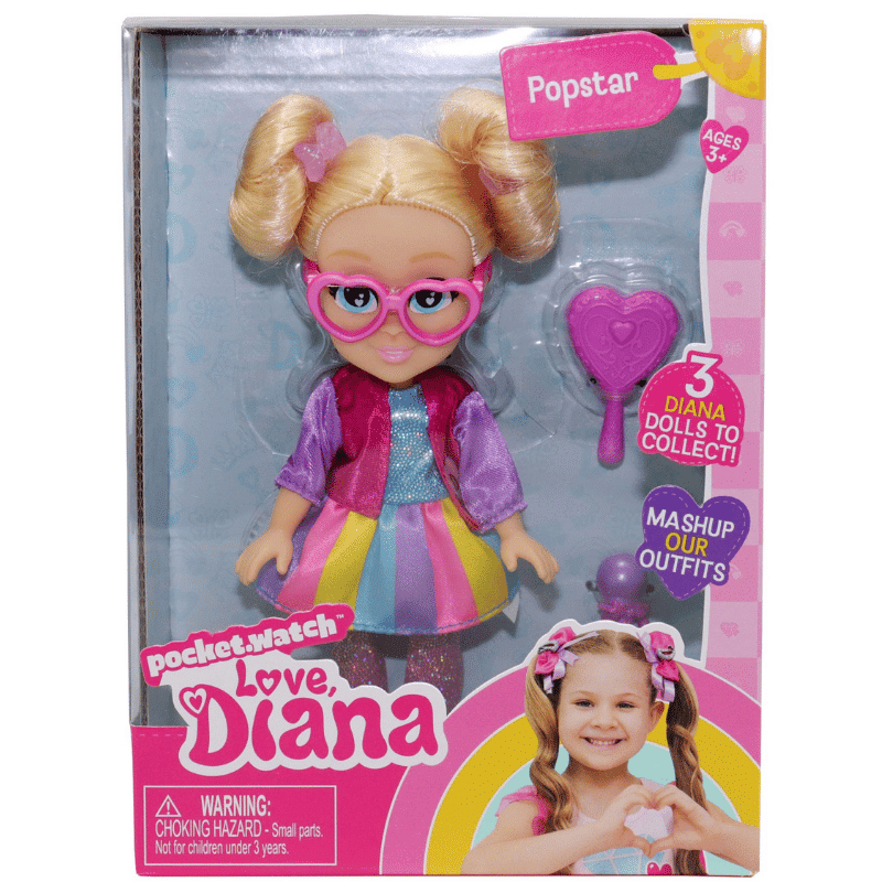 Love Diana on suosittu pop-tähti! Dianalla on yllään näyttävä, värikäs asu joka sopii esiintymiseen, ja mukana tulee pieni mikrofoni, sekä hiusharja nuken hiusten muotoiluun.