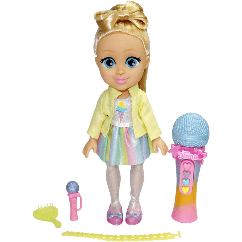 Pakkaus sisältää Diana-nuken, hiusharjan ja mikrofonit sinulle ja Dianalle!
