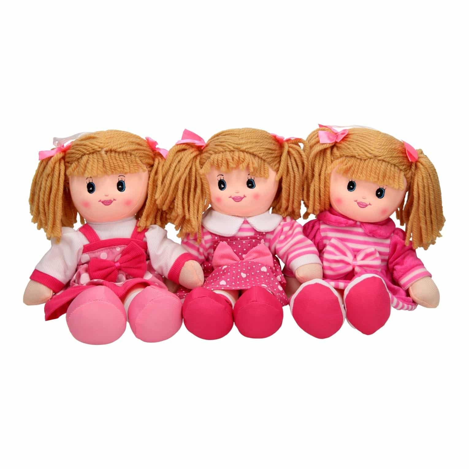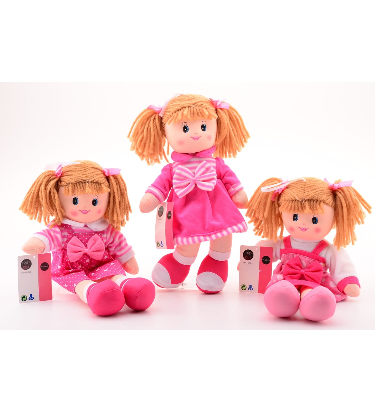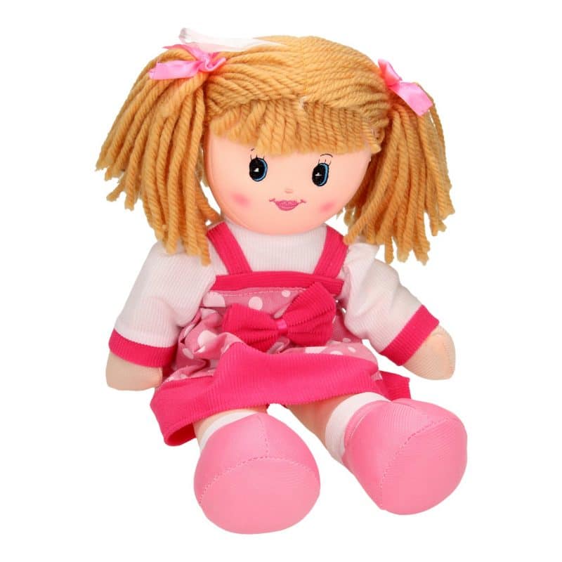 Ihanilla, perinteisillä ja rakastetuilla Mollamaija nukeilla on otsatukka, kaksi saparoa ja ommellut suu sekä silmät. Jokaisella nukella on vaaleanpunaiset mekot, joissa on rusetti, ja ripustusnaru pään päällä. Hyvä ja pehmeä leikki- ja yökaveri sopii kaiken ikäisille lapsille. Pituus noin 40 cm.