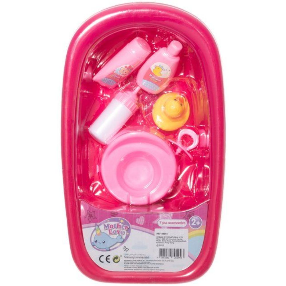 Nuken amme, jossa on kaikki mitä tarvitaan vauvanuken täydelliseen kylpyhetkeen: kylpyamme, potta, tutti, kylpyankka ja 3 hoitotarvikepulloa.