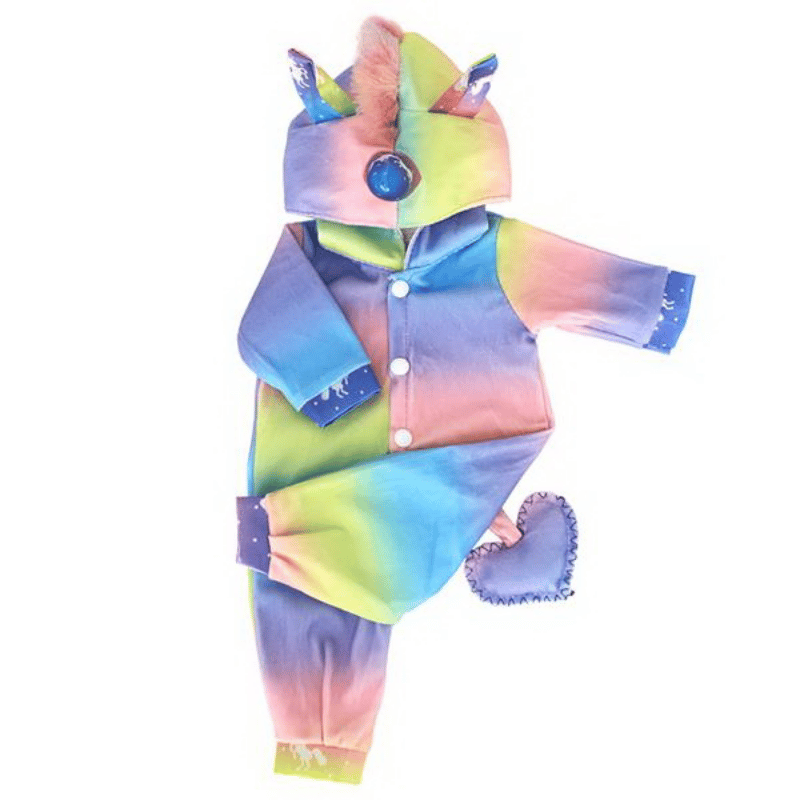 Ihana sateenkaaren väreissä hehkuva yksisarvisen asu vauvanukellesi. Asussa on huppu ja häntä!