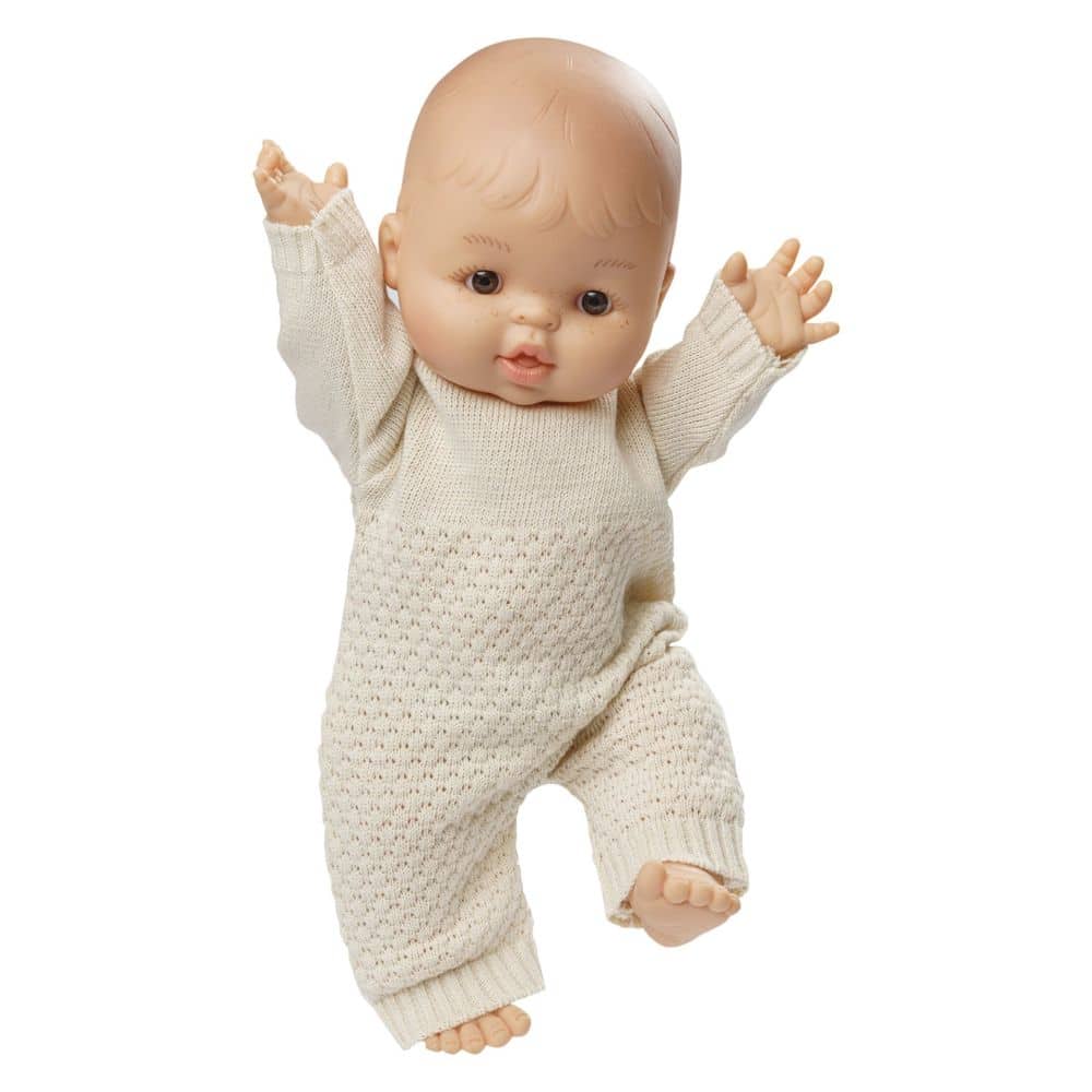 Upea neulottu luonnonvalkoinen haalari 35-45 cm kokoisille nukeille