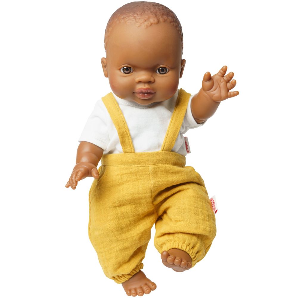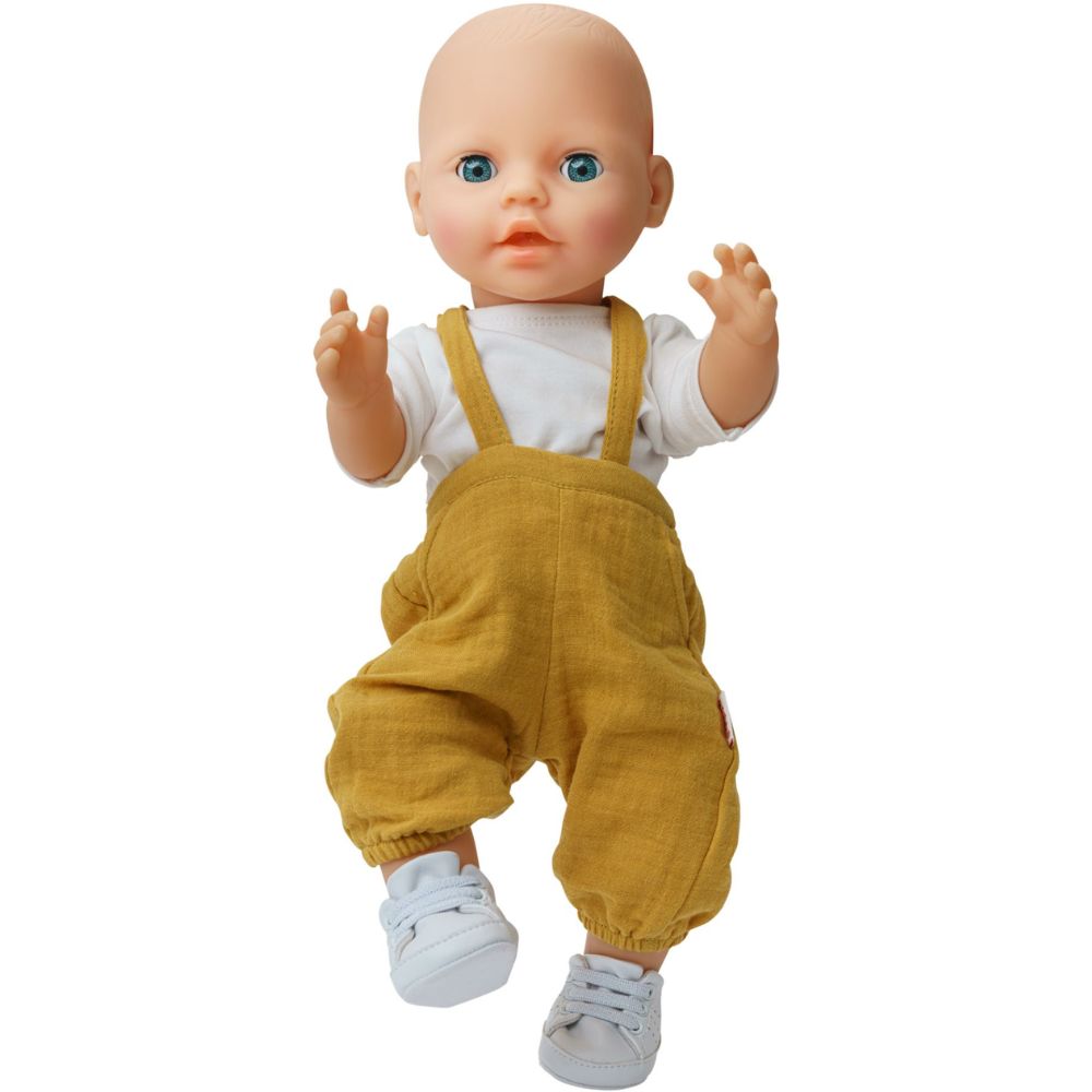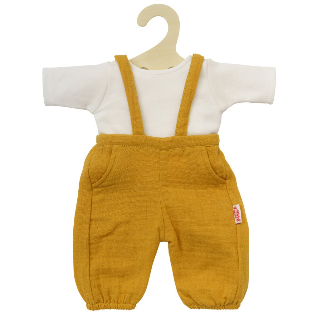 Pirteä ja moderni nuken asu, joka koostuu keltaisista henkselihousuista ja valkoisesta paidasta. Helessin asukokonaisuus on suunniteltu sopimaan 35–45 cm kokoisille nukeille, ja sen kirkkaat värit sekä tarkasti viimeistellyt yksityiskohdat tekevät siitä täydellisen valinnan nukkeleikkeihin.