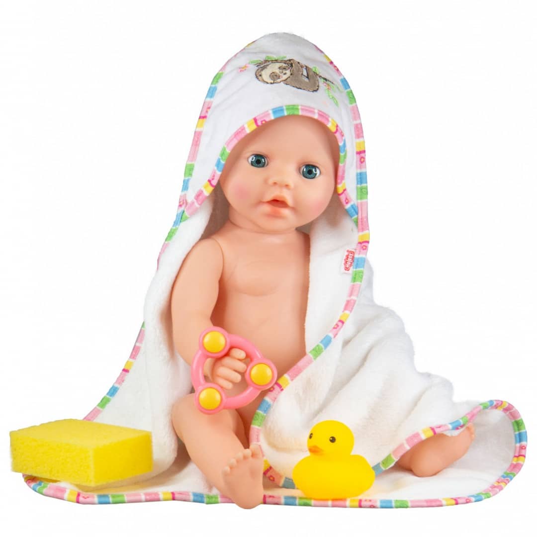 Nuken hupullinen kylpypyyhe ja tarvikkeita. Täydellinen setti nuken kylvetykseen! Tekee kylpemisestä entistäkin hauskempaa.