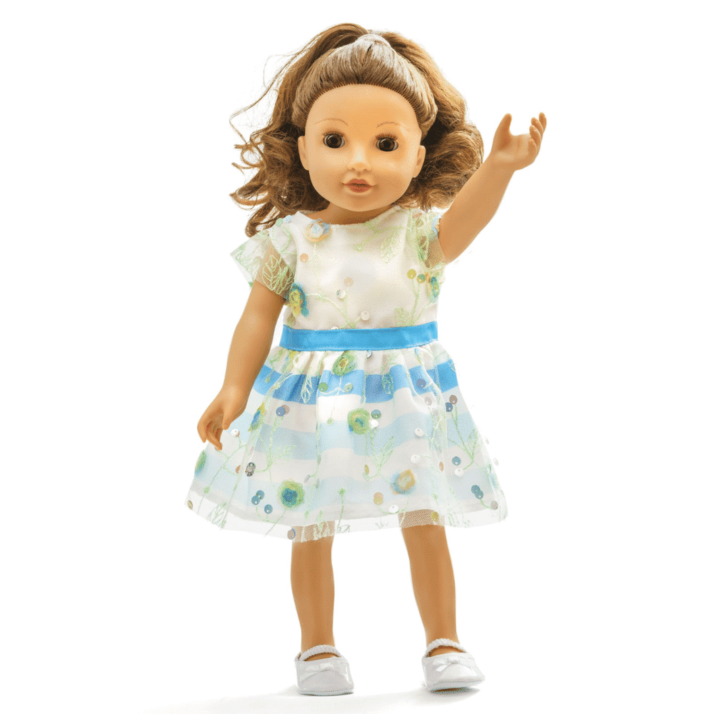 Helessin nukkemekko ”Sea of Flowers” on kesän ehdoton must-have. Se meren värinen ja sitä korstaa myö kukat. Alusmekon sinisen ja päälliskankaan vihreät pastellisävyt antavat muotoiluun merituulen keveyttä. Takana oleva tarrakiinnitys tekee nukkemekon pukemisen ja riisumisen erittäin helpoksi. Täydellinen mekko sopii upeisiin aurinkoisiin päiviin ja leutoisiin kesäiltoihin. Mekko sopii useimmille myyntikelpoisille nukkeille, joiden koko on 35-45 cm. Tuote toimitetaan puisella ripustimella.