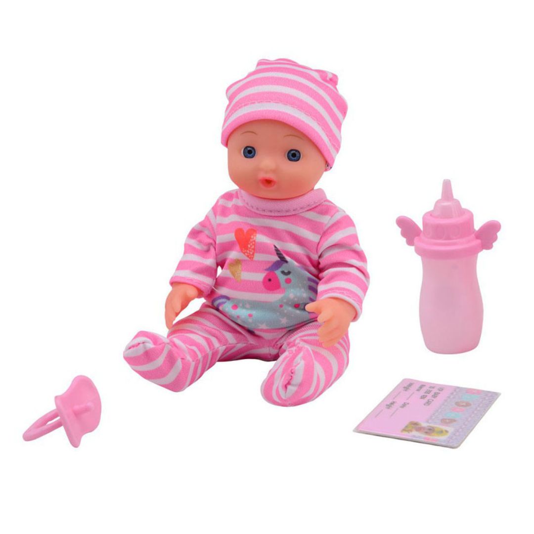 - Sisältö: Nukke, vaatteet, tuttipullo ja tutti