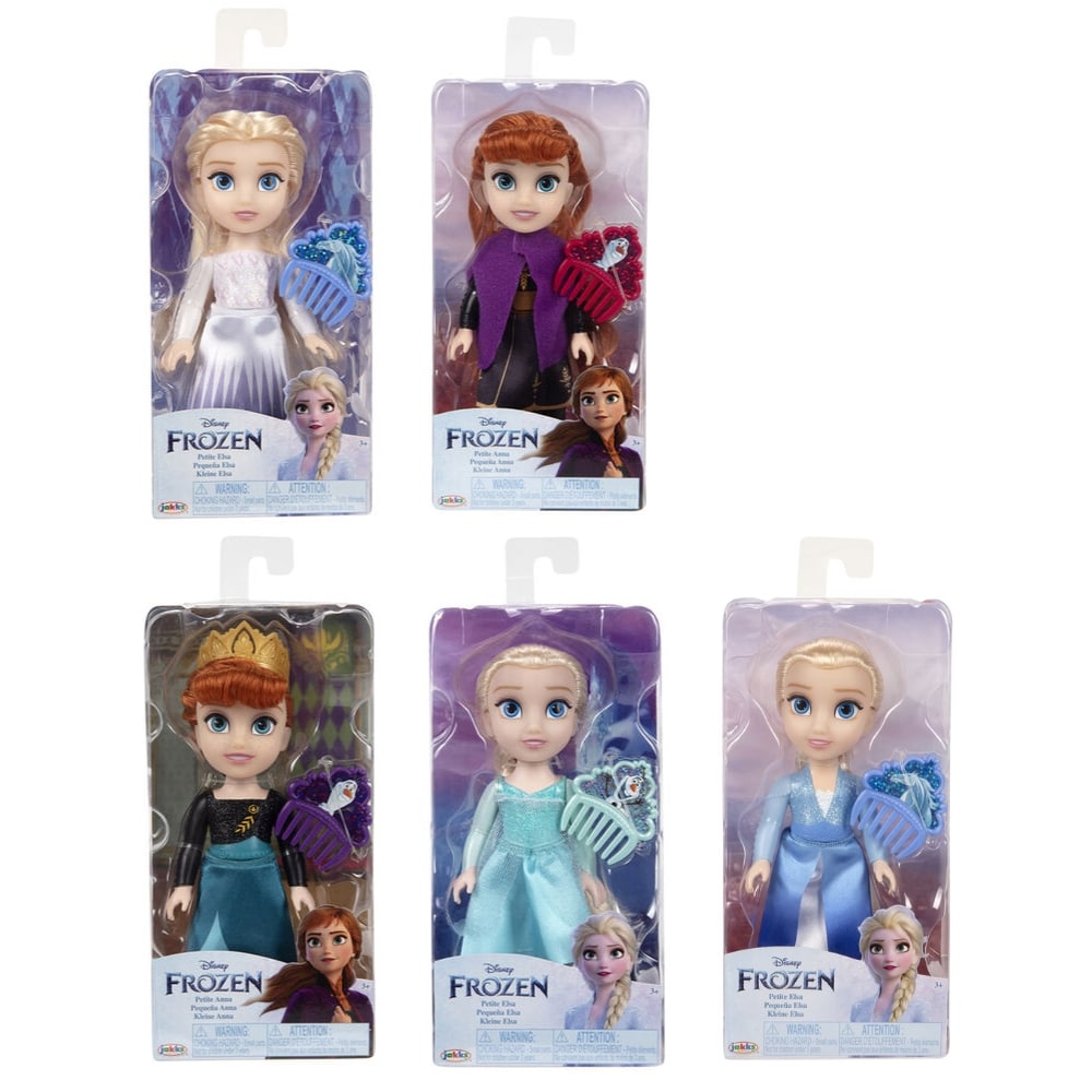 Prinsessa nukke 15 cm Frozen erilaisia – Kuvittele ja luo uudelleen suosikkitarinoitasi ja -seikkailujasi leikkiessäsi pienellä (15 cm) Frozen 2 -nukellasi! Nauti leikistä uskomattoman yksityiskohtaisilla Elsa- ja Anna-lapsinukeilla. Valikoimassa 5 erinäköistä nukkea.