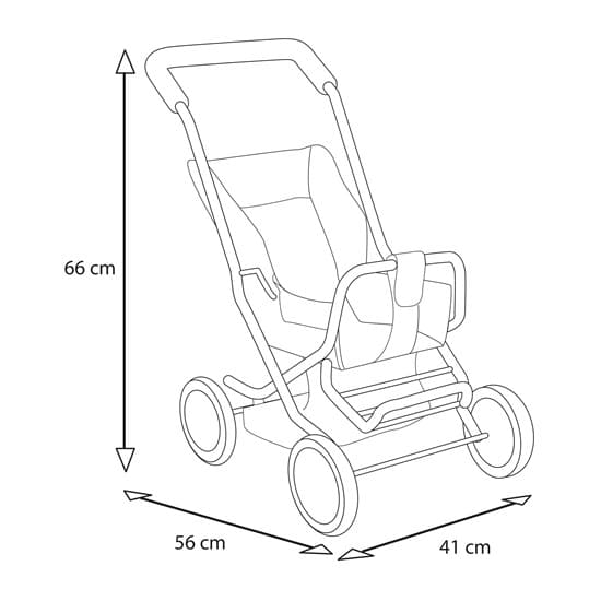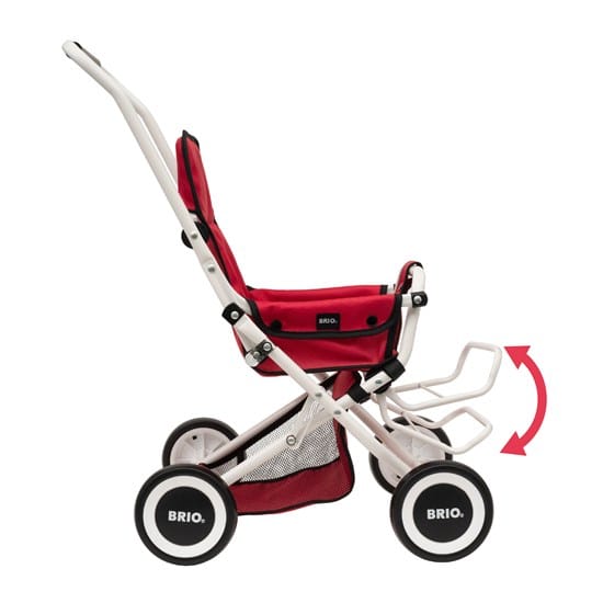 Niissä on yksinkertainen taittuva runko helppoa säilytystä varten, säädettävä jalkatuki nukelle ja tavarakori, johon voi laittaa kaikki tarvikkeet.